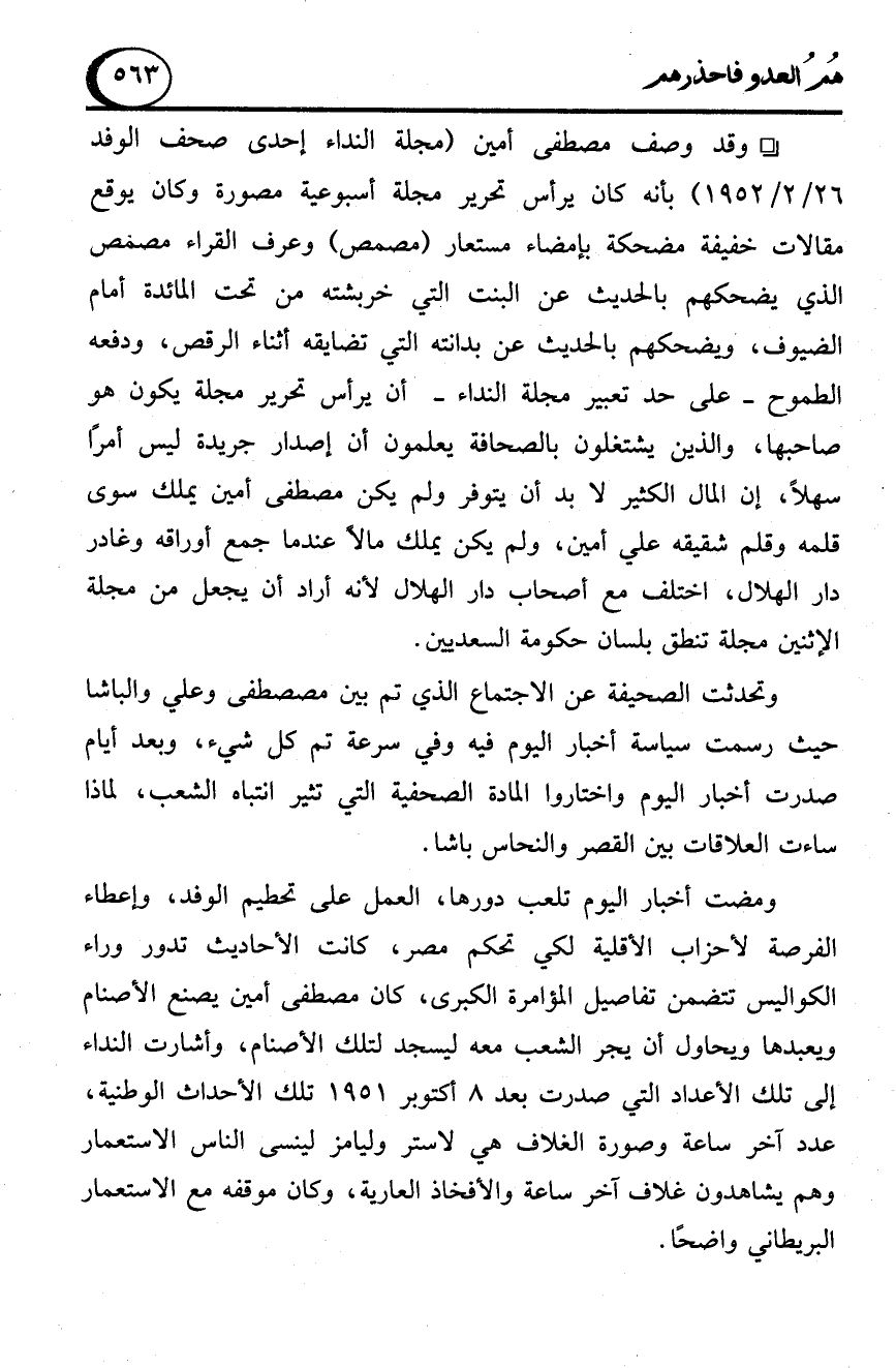 ومضت أخبار اليوم تلعب دورها، العمل على تحطيم الوفد، وإعطاء الفرصة لأحزاب الأقلية لكي تحكم مصر، كانت الأحاديث تدور وراء الكواليس تتضمن تفاصيل المؤامرة الكبرى، كان مصطفى أمين يصنع الأصنام ويعبدها ويحاول أن يجر الشعب معه ليسجد لتلك الأصنام، وأشارت النداء إلى تلك الأعداد التي صدرت بعد 8 أكتوبر 1951 تلك الأحداث الوطنية، عدد آخر ساعة وصورة الغلاف هي لاستر وليامز لينسى الناس الاستعمار وهم يشاهدون غلاف آخر ساعة والأفخاذ العارية، وكان موقفه مع الاستعمار البريطاني واضحًا.