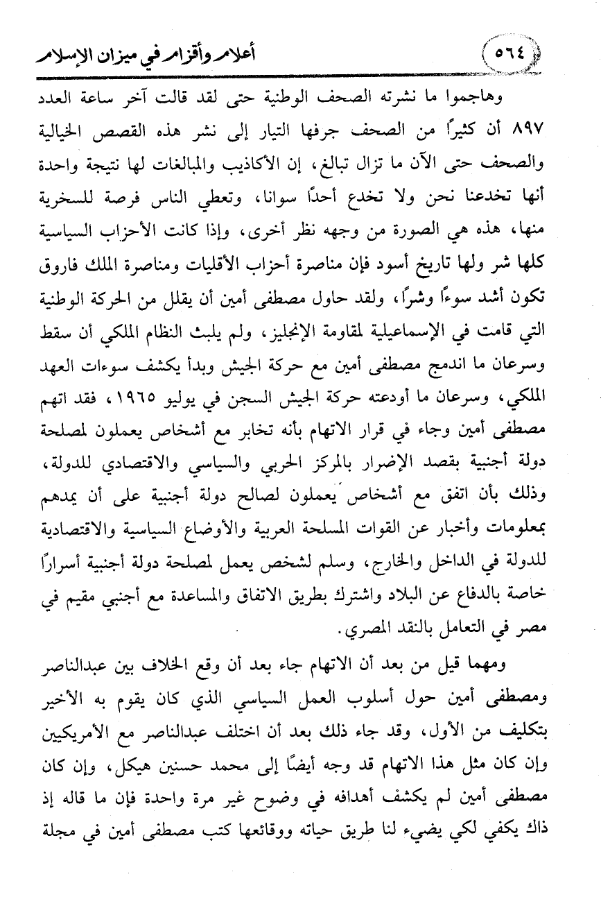 ومهما قيل من بعد أن الاتهام جاء بعد أن وقع الخلاف بين عبد الناصر ومصطفى أمين حول أسلوب العمل السياسي الذي كان يقوم به الأخير بتكليف من الأول، وقد جاء ذلك بعد أن اختلف عبد الناصر مع الأمريكيين وإن كان مثل هذا الاتهام قد وجه أيضًا إلى محمد حسنين هيكل، وإن كان مصطفى أمين لم يكشف أهدافه في وضوح غير مرة واحدة فإن ما قاله إذ ذاك يكفي لكي يضيء لنا طريق حياته ووقائعها كاتب مصطفى أمين في مجلة
