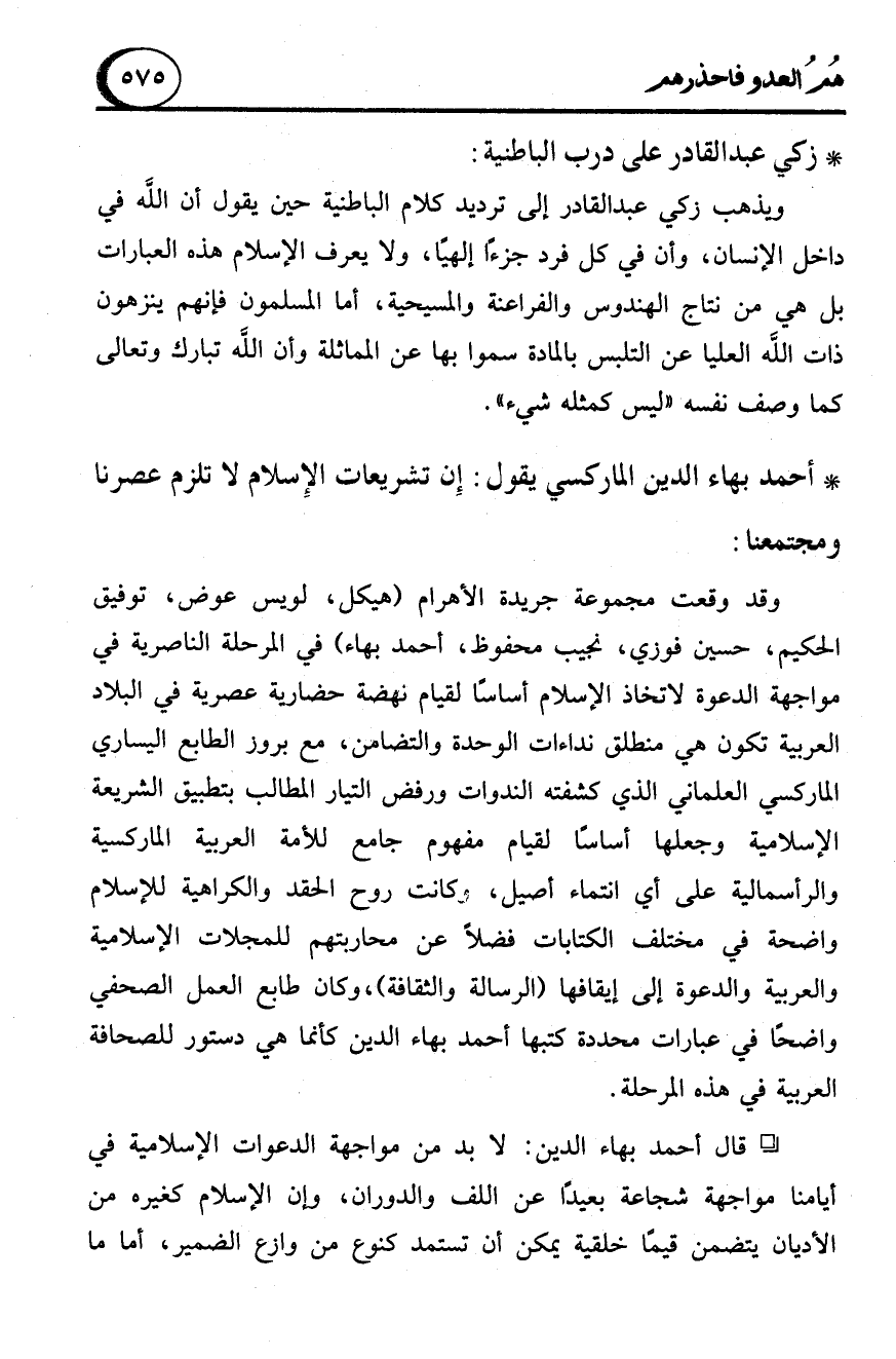 * أحمد بهاء الدين الماركسي يقول: إِن تشريعات الإِسلام لا تلزم عصرنا ومجتمعنا: