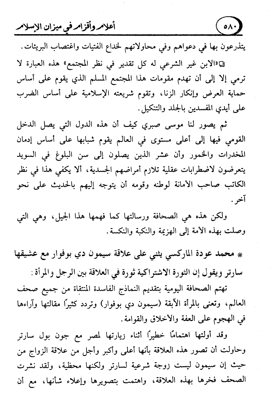 * محمد عودة الماركسي يثني على علاقة سيمون في بوفوار مع عشيقها سارتر ويقول إن الثورة الاشتراكية ثورة في العلاقة بين الرجل والمرأة:
