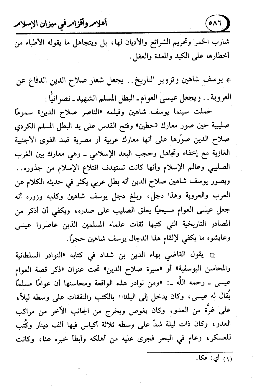 * يوسف شاهين وتزوير التاريخ .. يجعل شعار صلاح الدين الدفاع عن العروبة .. ويجعل عيسى العوام -البطل المسلم الشهيد- نصرانيًّا: