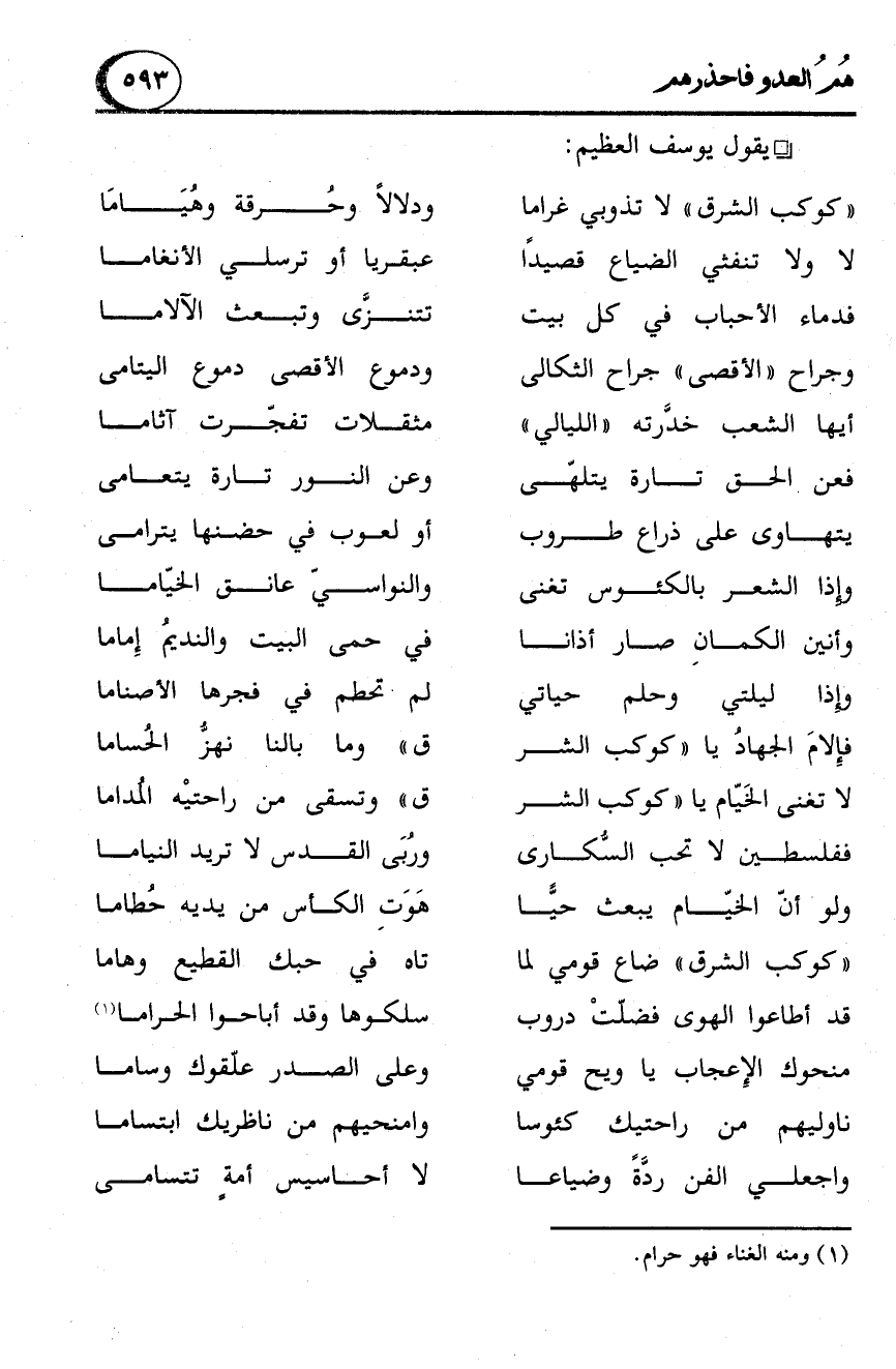 لا تغنى الخَيّام يا "كوكب الشر ... ق" وتسقى من راحتيْه المُداما