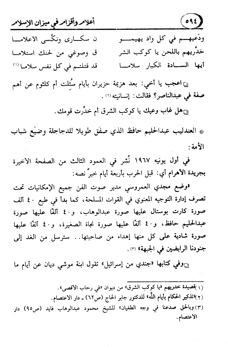 (3) "وبالحق صدعنا في وجه الطغيان" للشيخ محمود عبد الوهاب فايد (ص 95) دار الاعتصام.