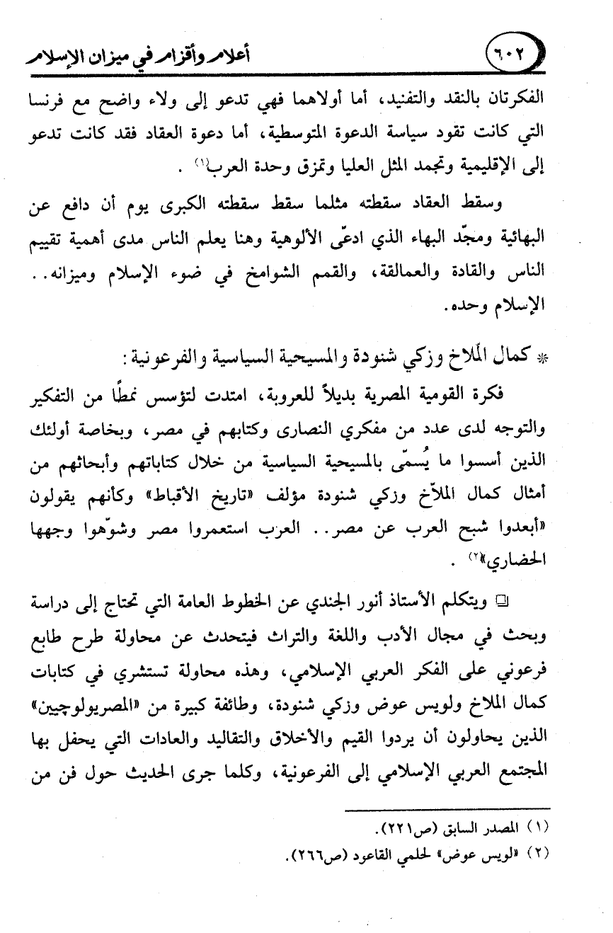 وسقط العقاد سقطته مثلما سقط سقطته الكبرى يوم أن دافع عن البهائية ومجّد البهاء الذي ادعّى الألوهية وهنا يعلم الناس مدى أهمية تقييم الناس والقادة والعمالقة، والقمم الشوامخ في ضوء الإسلام وميزانه .. الإسلام وحده.