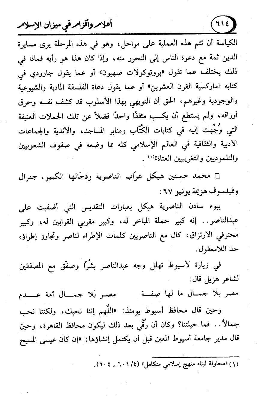 (1) "محاولة لبناء منهج إسلامي متكامل" (4/ 601 - 604).