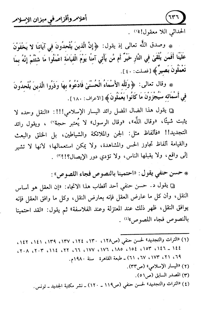 (4) "التراث والتجديد" لحسن حنفي (ص 119 - 120) - نشر مكتبة الجديد - تونس.