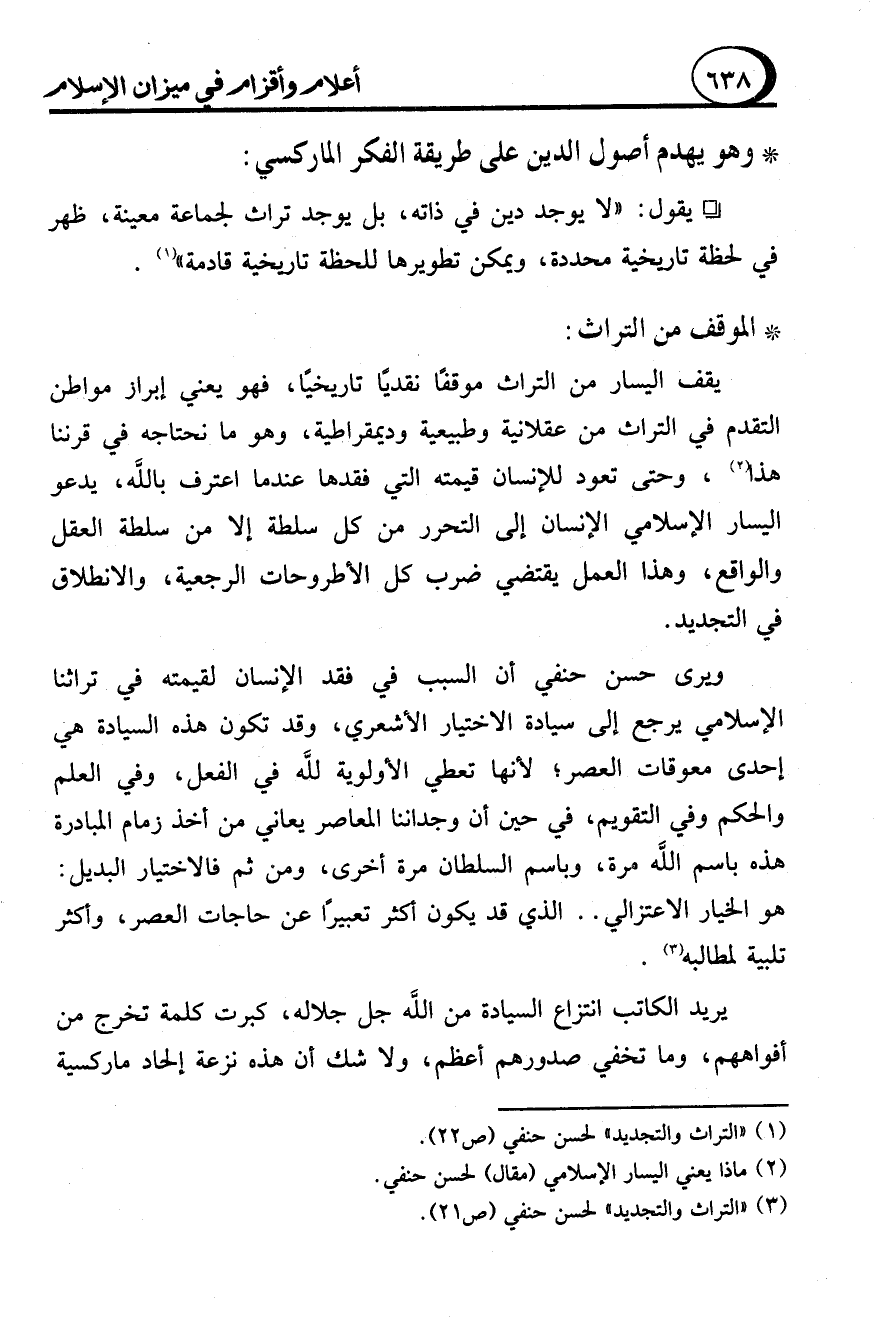 (3) "التراث والتجديد" لحسن حنفي (ص 21).
