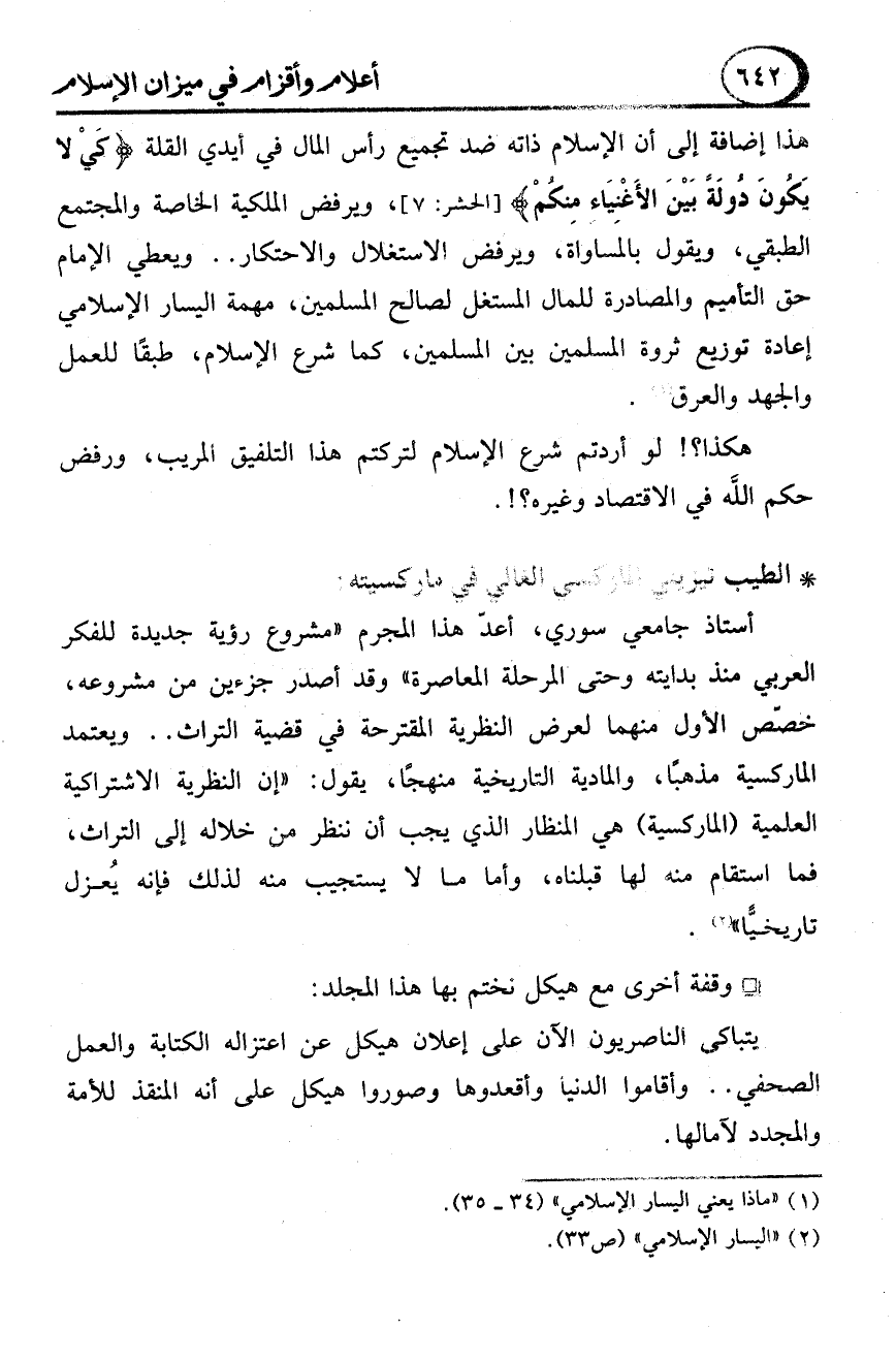 (1) "ماذا يعني اليسار الإسلامي" (34 - 35).