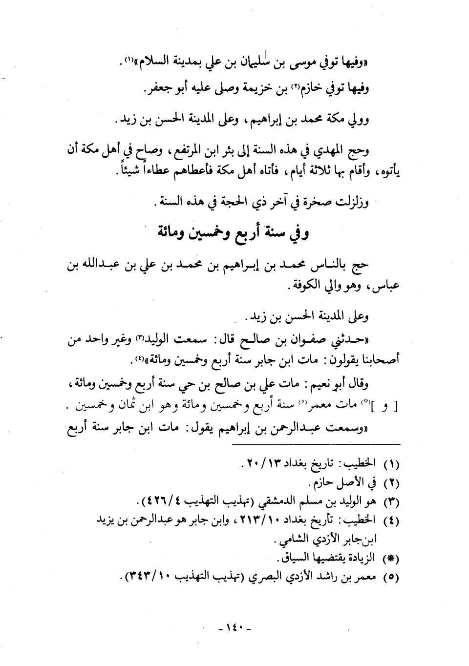 «وَفِيهَا تُوُفِّيَ مُوسَى بْنُ سُلَيْمَانَ بْنِ عَلِيٍّ بِمَدِينَةِ السَّلَامِ» [1] .