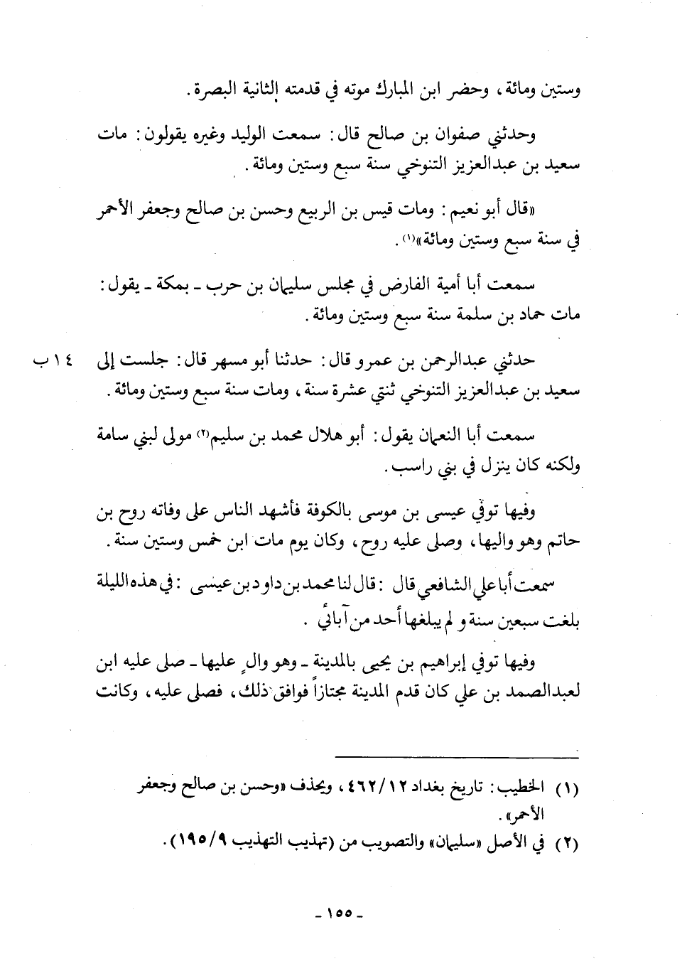 [1] الخطيب: تاريخ بغداد 12/ 462، ويحذف «وحسن بن صالح وجعفر الأحمر» .