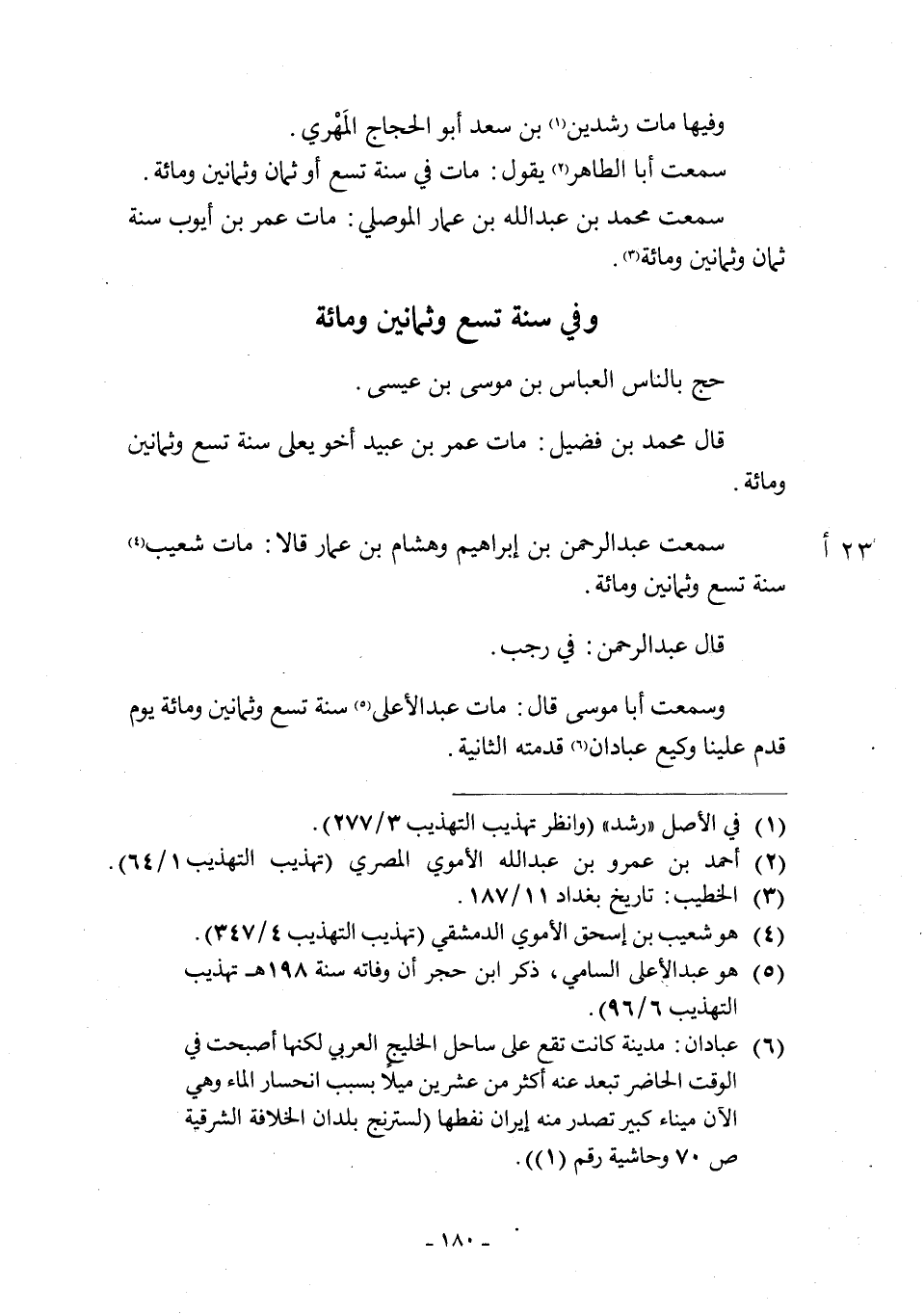 وَسَمِعْتُ أَبَا مُوسَى قَالَ: مَاتَ عَبْدُ الْأَعْلَى [5] سَنَةَ تِسْعٍ وَثَمَانِينَ وَمِائَةٍ يَوْمَ قَدِمَ عَلَيْنَا وَكِيعٌ عَبَادَانَ [6] قدمته الثانية.