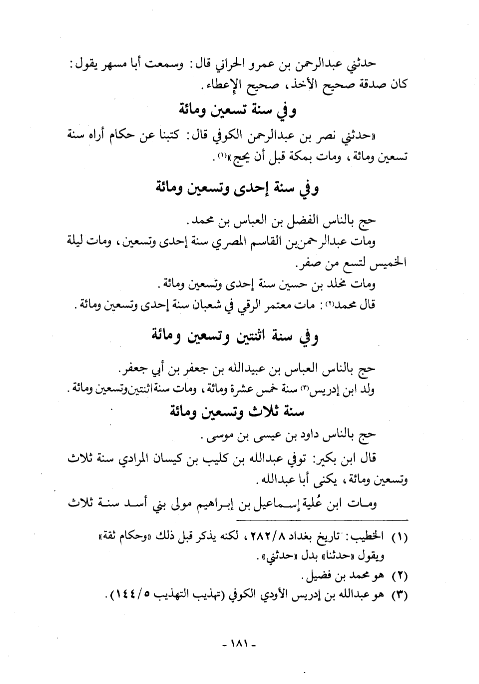 [1] الخطيب: تاريخ بغداد 8/ 282، لكنه يذكر قبل ذلك «وحكام ثقة» ويقول: «حدثنا» بدل «حدثني» .