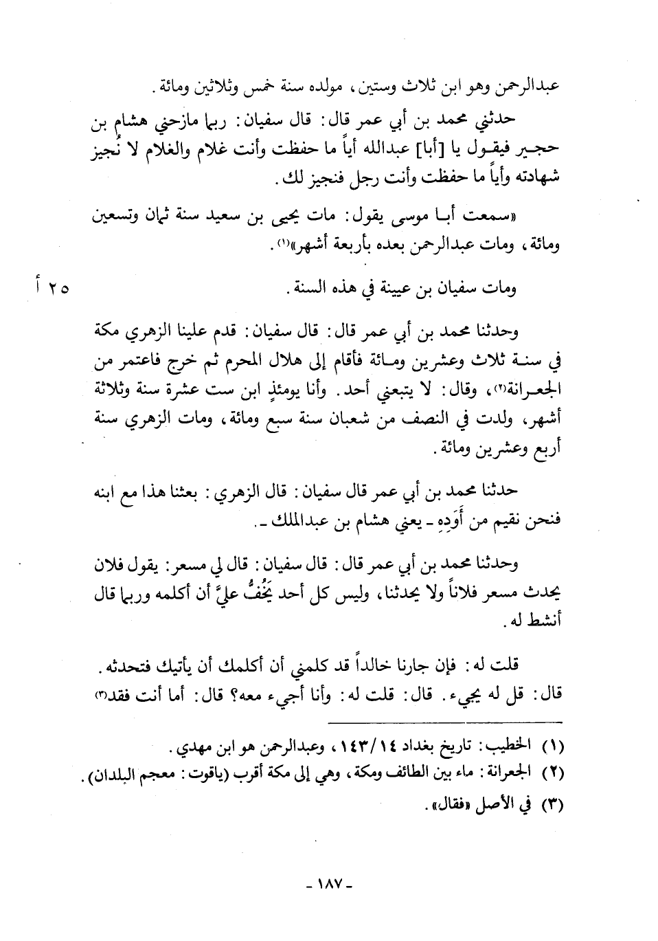 [1] الخطيب: تاريخ بغداد 14/ 143، وعبد الرحمن هو ابن مهدي.