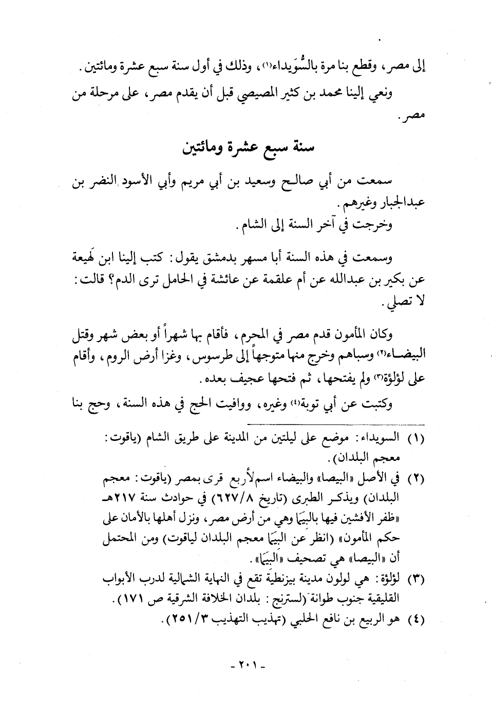 إِلَى مِصْرَ، وَقَطَعَ بِنَا مَرَّةً بِالسُّوَيْدَاءِ [1] ، وَذَلِكَ فِي أَوَّلِ سَنَةَ سَبْعَ عَشْرَةَ وَمِائَتَيْنِ.