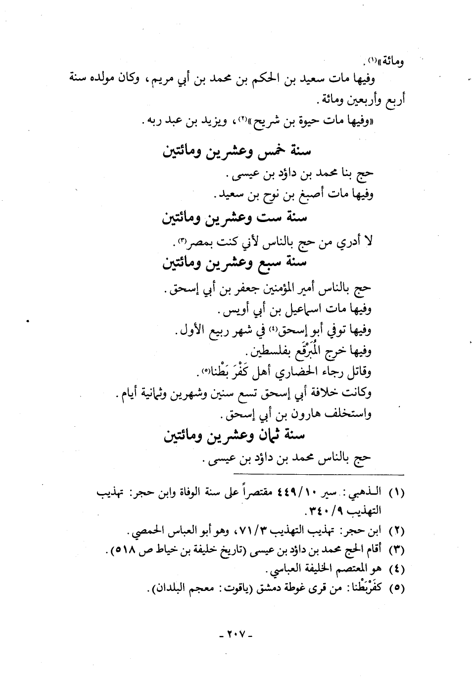 سَنَةَ خَمْسٍ وَعِشْرِينَ وَمِائَتَيْنِ