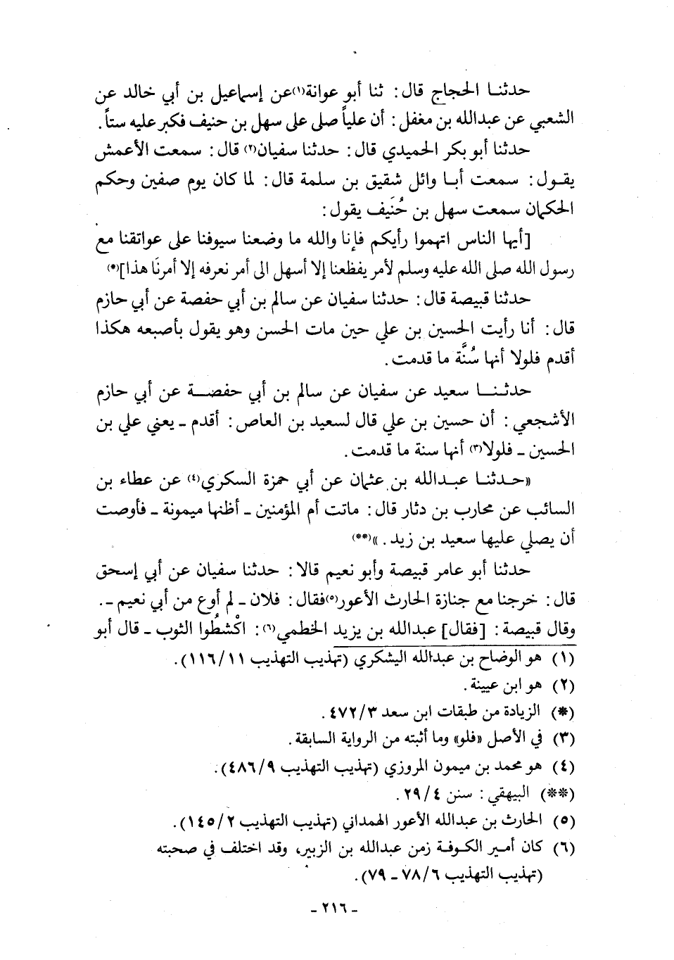 حدثنا الحجاج قال: ثنا أبو عوانة [1] عن إسماعيل بن أبي خالد عن الشعبي عن عَبْدِ اللَّهِ بْنِ مُغَفَّلٍ: أَنَّ عَلِيًّا صَلَّى عَلَى سَهْلِ بْنِ حُنَيْفٍ فَكَبَّرَ عَلَيْهِ سِتًّا.