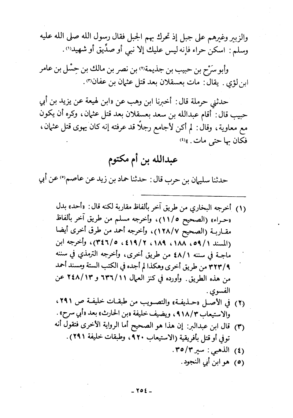 «أحد» بدل «حراء» (الصحيح 5/ 11) وأخرجه مسلم من طريق آخر بألفاظ مقاربة (الصحيح 7/ 128) ، وأخرجه أحمد من طرق أخرى أيضا (المسند 1/ 59، 188، 189، 2/ 419، 5/ 346) ، وأخرجه ابن ماجة في سننه 1/ 48 من طريق أخرى أيضا، وأخرجه الترمذي في سننه 9/ 323 من طريق أخرى، وهكذا لم أجده في الكتب الستة ومسند أحمد من هذه الطريق.