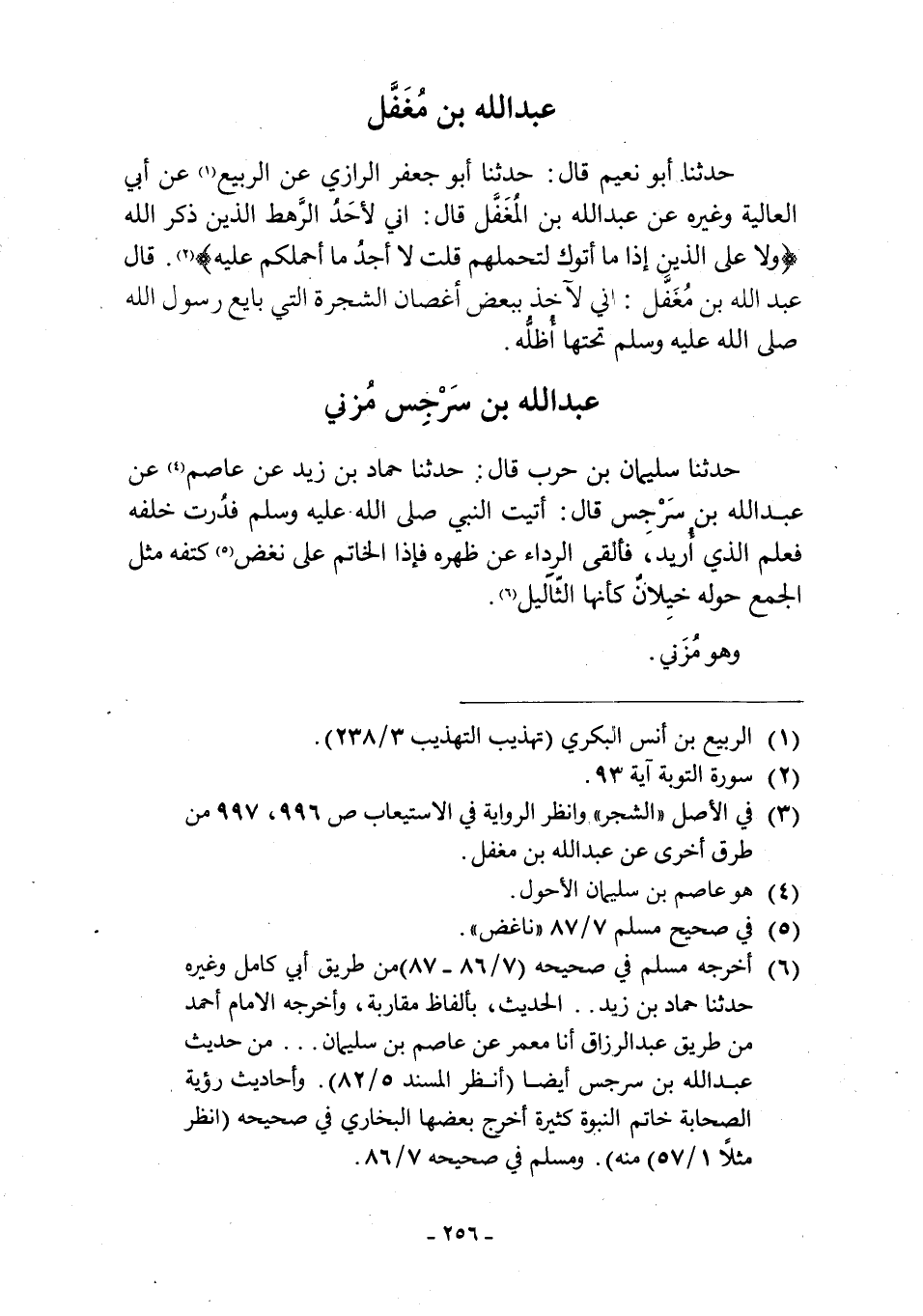 [3] في الأصل «الشجر» وانظر الرواية في الاستيعاب ص 996، 997 من طرق أخرى عن عبد الله بن مغفل.