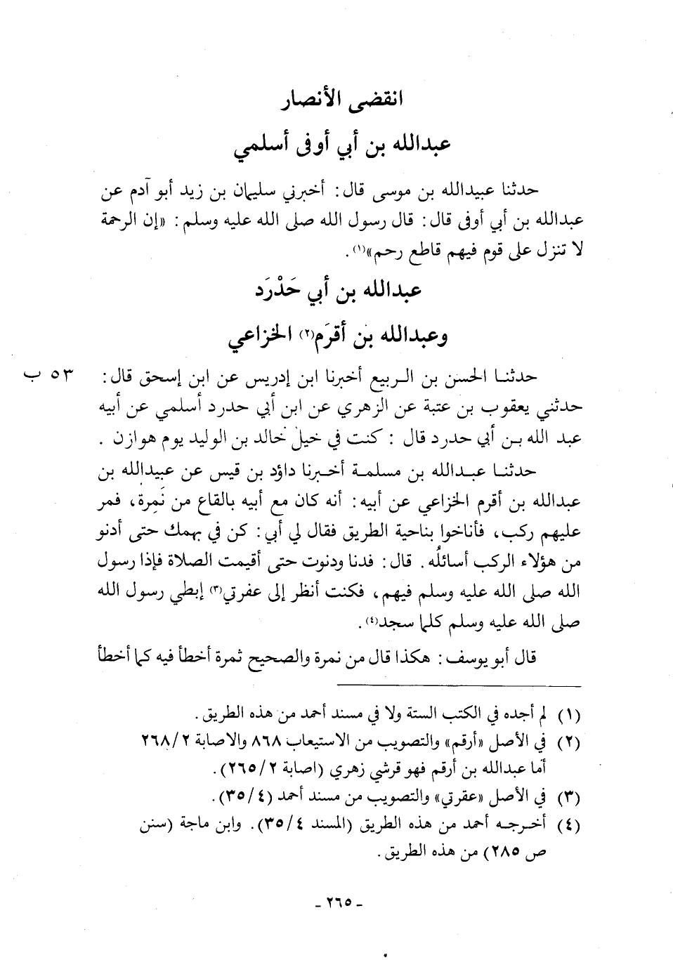 [2] في الأصل «أرقم» والتصويب من الاستيعاب 868، والاصابة 2/ 268، أما عبد الله بن أرقم فهو قرشي زهري (اصابة 2/ 265) .