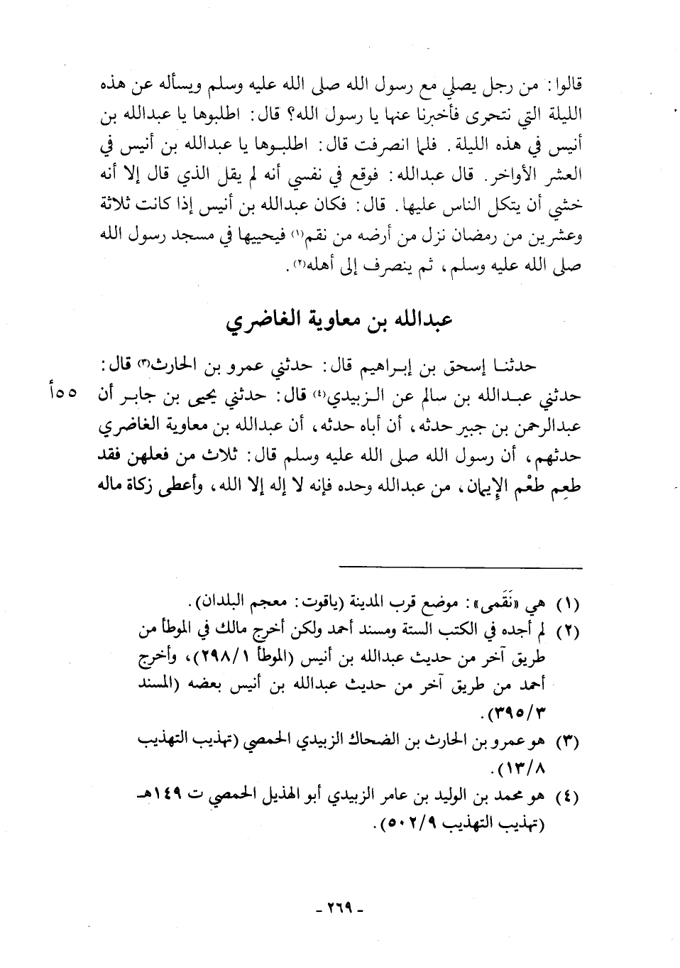[2] لم أجده في الكتب الستة ومسند أحمد ولكن أخرج مالك في الموطأ من طريق آخر من حديث عبد الله بن أنيس (الموطأ 1/ 298) ، وأخرج أحمد من طريق آخر من حديث عبد الله بن أنيس بعضه (المسند 3/ 395) .