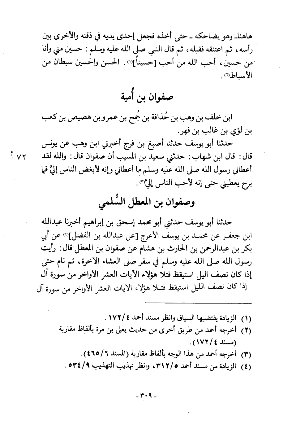 [4] الزيادة من مسند أحمد 5/ 312، وانظر تهذيب التهذيب 9/ 534.