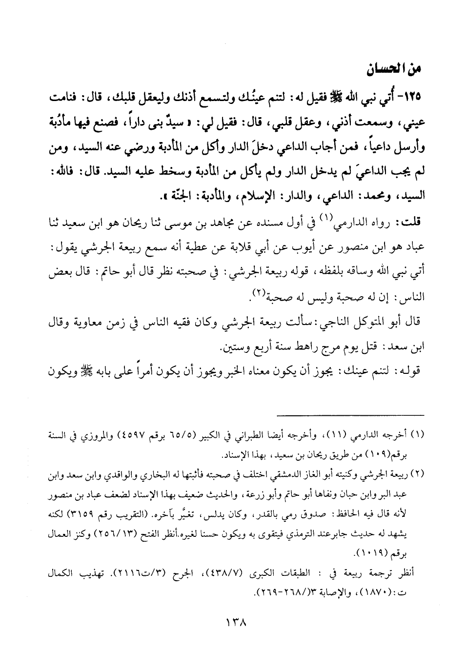 قلت: رواه الدارمي (¬1) في أول مسنده عن مجاهد بن موسى ثنا ريحان هو ابن سعيد ثنا عباد هو ابن منصور عن أيوب عن أبى قلابة عن عطية أنه سمع ربيعة الجرشي يقول: أتي نبي الله وساقه بلفظه، قوله ربيعة الجرشي: في صحبته نظر قال أبو حاتم: قال بعض الناس: إن له صحبة وليس له صحبة (¬2).