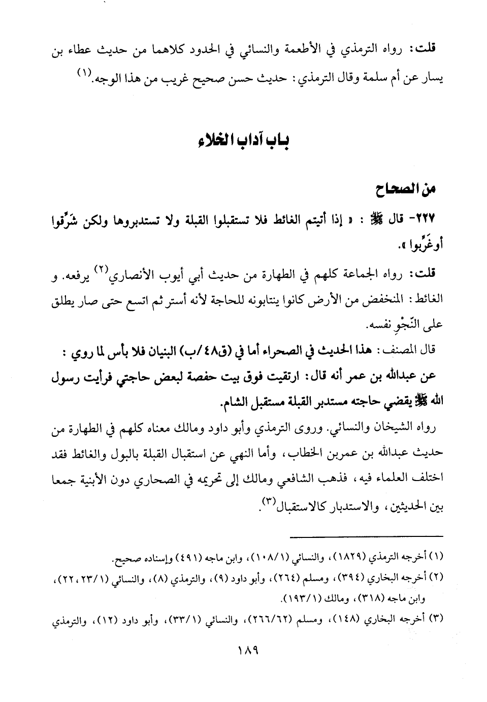 227 - قال - صلى الله عليه وسلم -: "إذا أتيتم الغائط فلا تستقبلوا القبلة ولا تستدبروها ولكن شَرِّقوا أو غَرِّبوا".