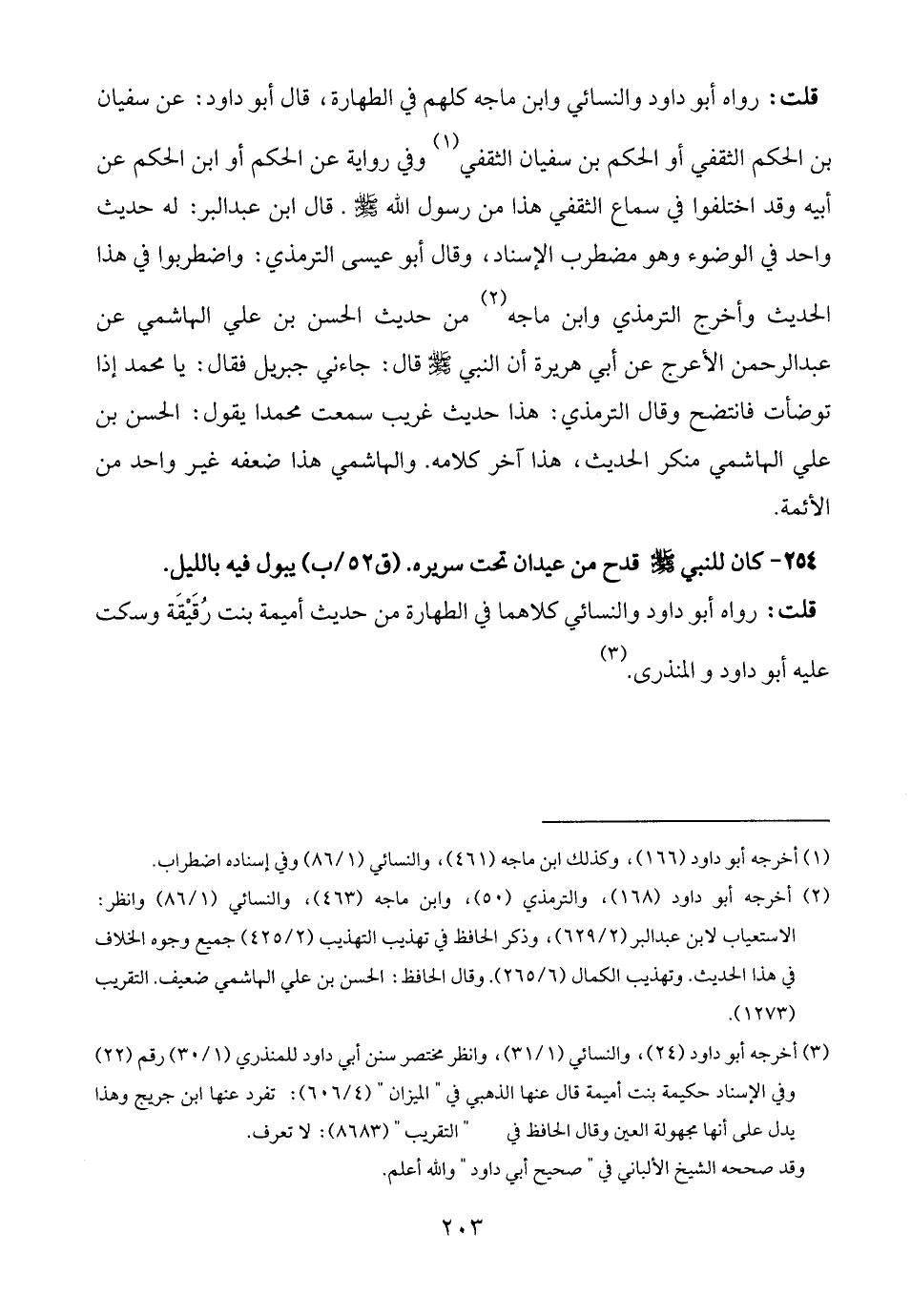 (¬2) أخرجه أبو داود (168)، والترمذي (50)، وابن ماجه (463)، والنسائي (1/ 86) وانظر: الاستعياب لابن عبد البر (2/ 629)، وذكر الحافظ في تهذيب التهذيب (2/ 425) جميع وجوه الخلاف في هذا الحديث. وتهذيب الكمال (6/ 265). وقال الحافظ: الحسن بن علي الهاشمي ضعيف. التقريب (1273).