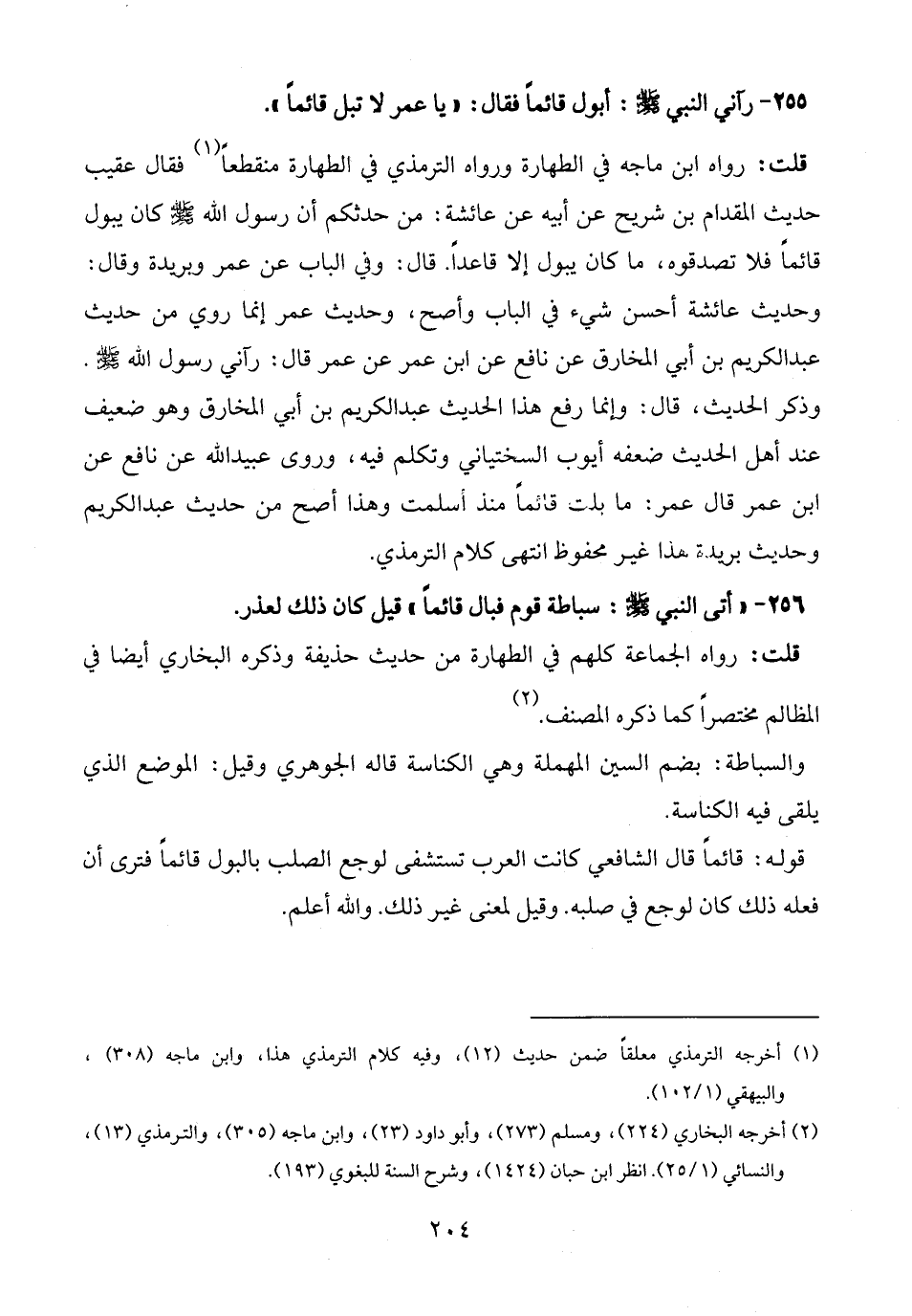 256 - "أتى النبي - صلى الله عليه وسلم -: سباطة قوم فبال قائمًا" قيل كان ذلك لعذر.