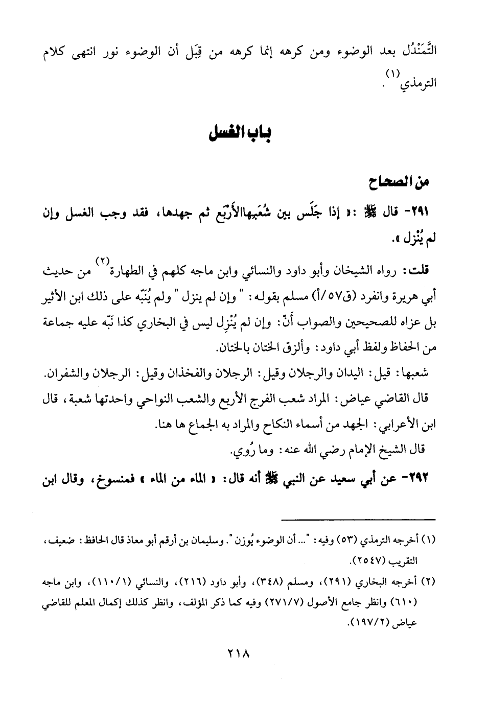 (¬2) أخرجه البخاري (291)، ومسلم (348)، وأبو داود (216)، والنسائي (1/ 110)، وابن ماجه (610) وانظر جامع الأصول (7/ 271) وفيه كما ذكر المؤلف، وانظر كذلك إكمال المعلم للقاضي عياض (2/ 197).