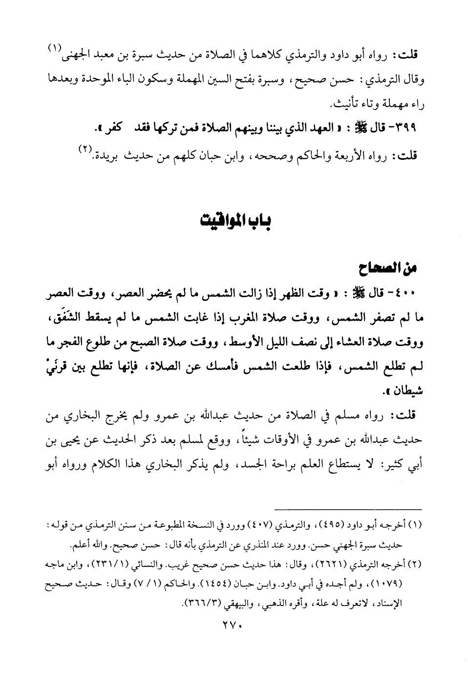 (¬1) أخرجه أبو داود (495)، والترمذي (407) وورد في النسخة المطبوعة من سنن الترمذي من قوله: حديث سبرة الجهني حسن. وورد عند المنذري عن الترمذي بأنه قال: حسن صحيح. والله أعلم.