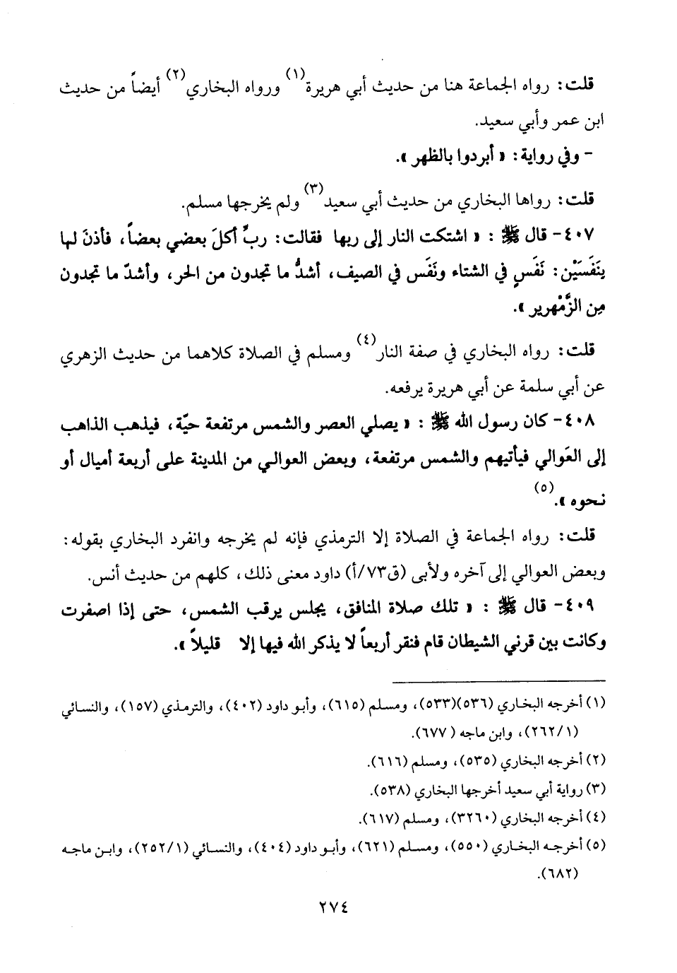408 - كان رسول الله - صلى الله عليه وسلم -: "يصلي العصر والشمس مرتفعة حيّة، فيذهب المذاهب إلى العَوالي فيأتيهم والشمس مرتفعة، وبعض العوالي من المدينة على أربعة أميال أو نحوه". (¬5)