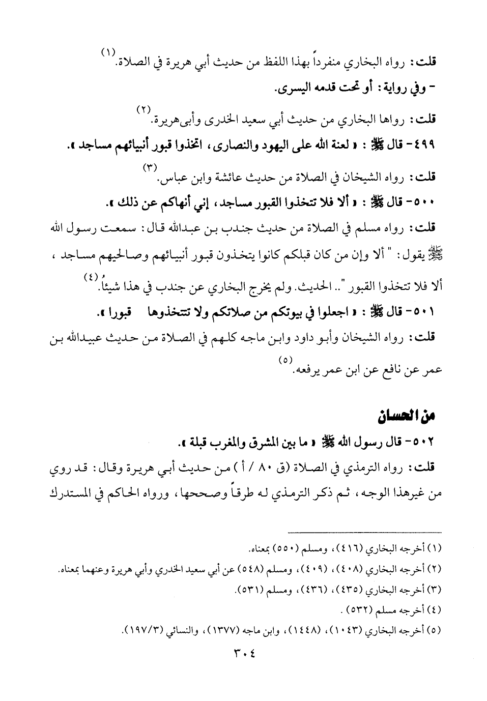 500 - قال - صلى الله عليه وسلم -: "ألا فلا تتخذوا القبور مساجد، إني أنهاكم عن ذلك".