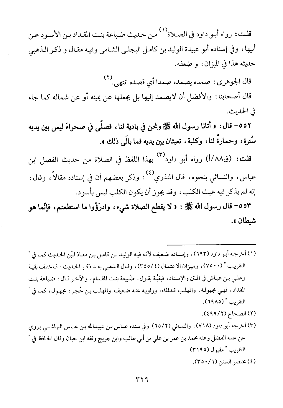 552 - قال: "أتانا رسول الله - صلى الله عليه وسلم - ونحن في بادية لنا، فصلّى في صحراءَ ليس بين يديه سُترة، وحمارةٌ لنا، وكلبة، تعبثان بين يديه فما بالَى ذلك".