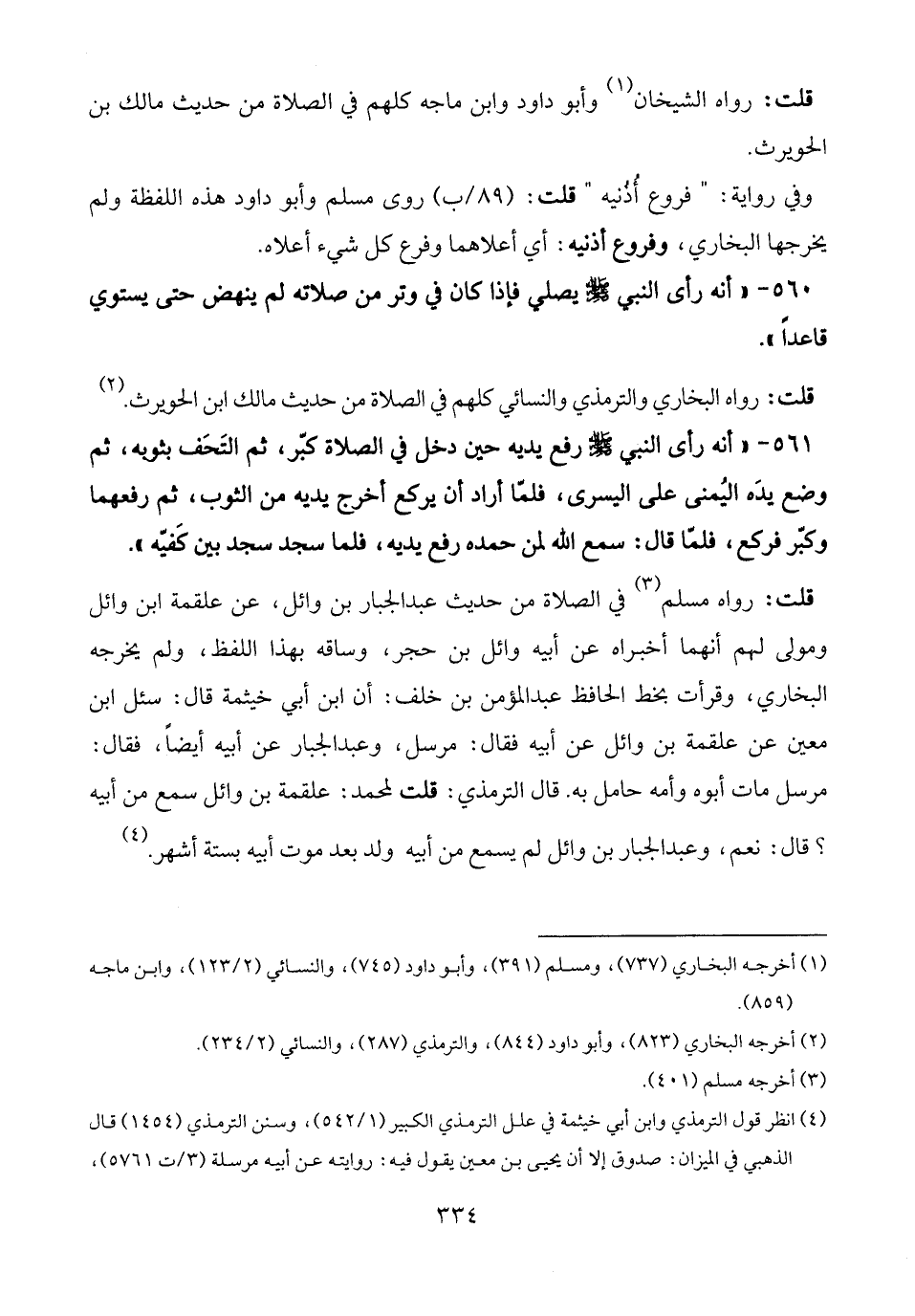 560 - "أنه رأى النبي - صلى الله عليه وسلم - يصلي فإذا كان في وتر من صلاته لم ينهض حتى يستوي قاعدًا".