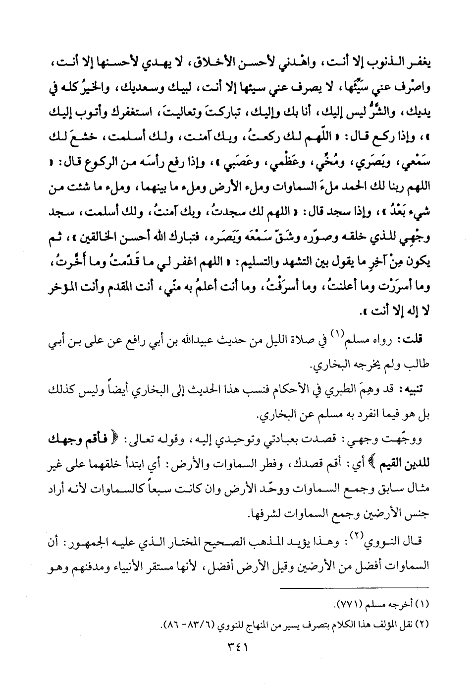 قال النووي (¬2): وهذا يؤيد المذهب الصحيح المختار الذي عليه الجمهور: أن السماوات أفضل من الأرضين وقيل الأرض أفضل، لأنها مستقر الأنبياء ومدفنهم وهو