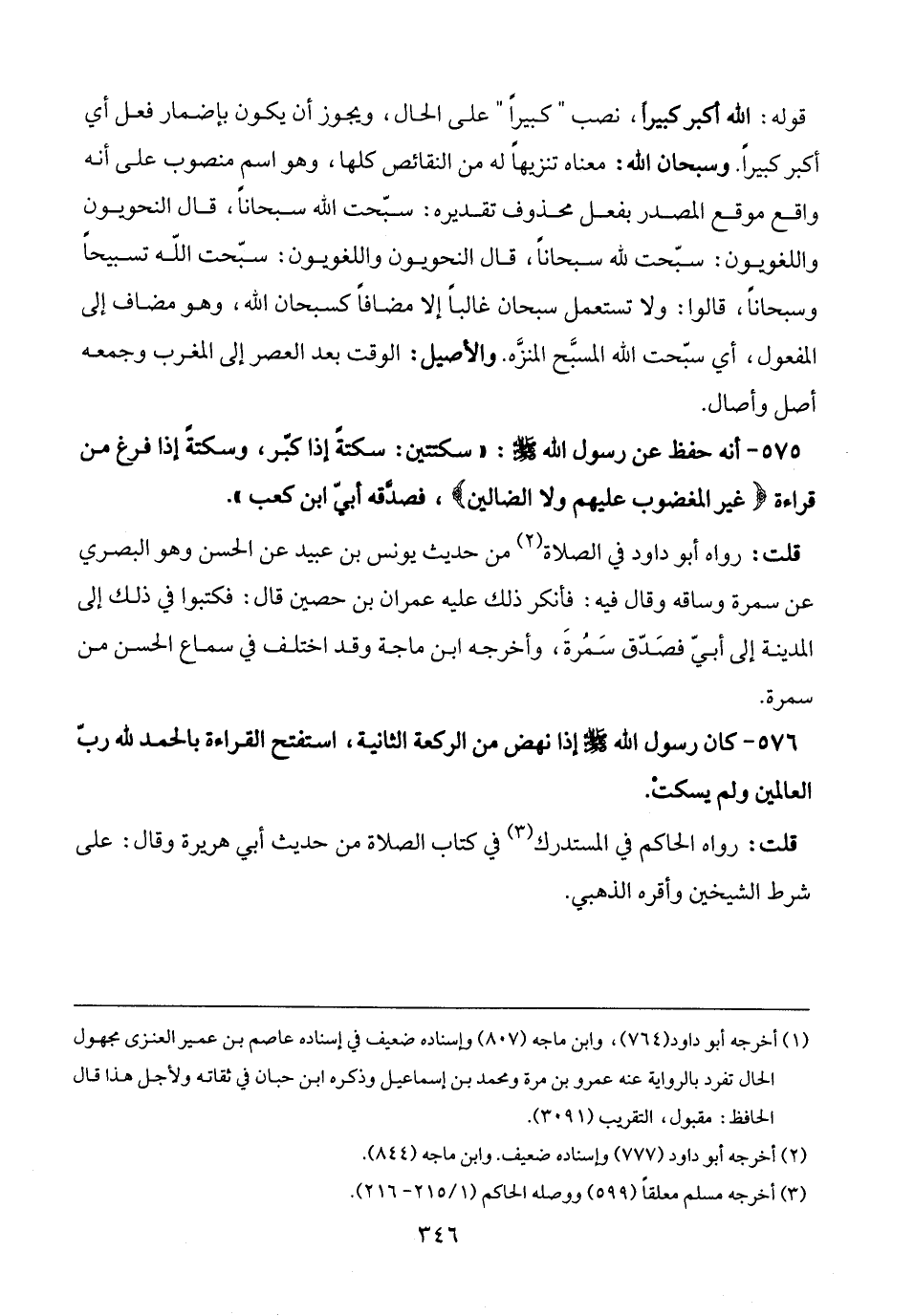 575 - أنه حفظ عن رسول الله - صلى الله عليه وسلم -: "سكتتين: سكتةً إذا كبّر، وسكتةً إذا فرغ من قراءة {غير المغضوب عليهم ولا الضالين}، فصدَّقه أبيّ ابن كعب".