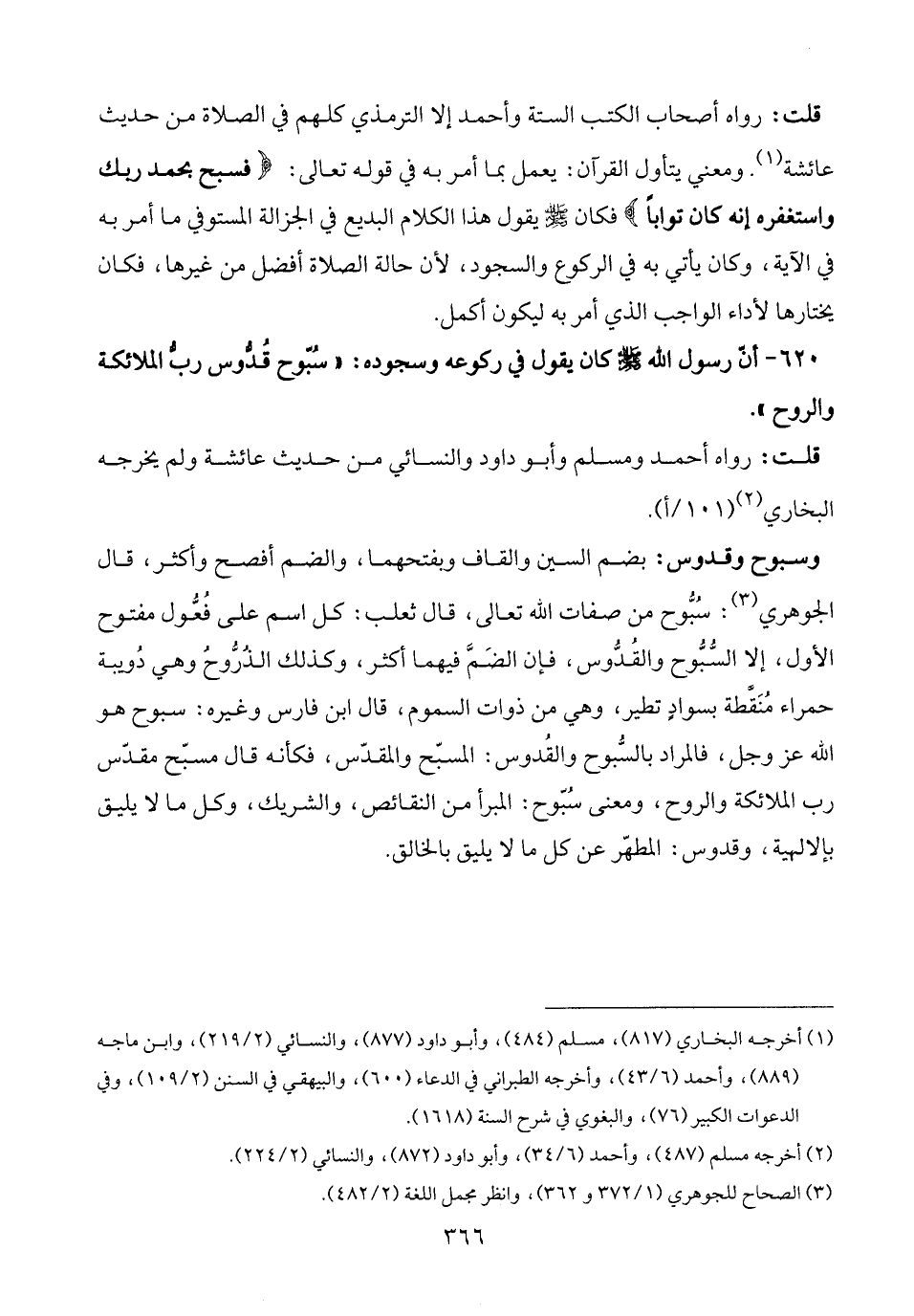 620 - أنّ رسول الله - صلى الله عليه وسلم - كان يقول في ركوعه وسجوده: "سُبّوح قُدُّوس ربُّ الملائكة والروح".