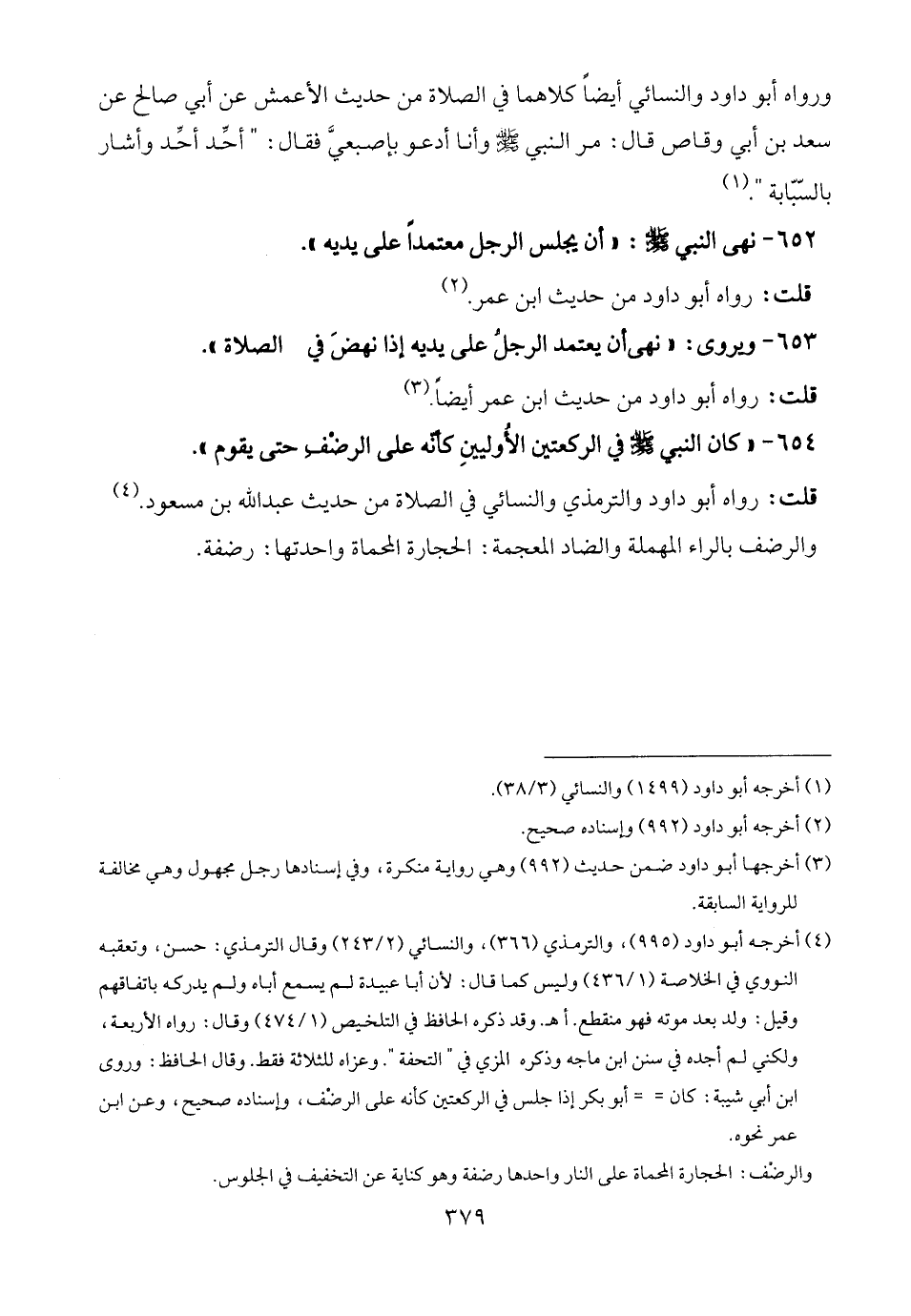 653 - ويروى: "نهى أن يعتمد الرجل على يديه إذا نهضَ في الصلاة".