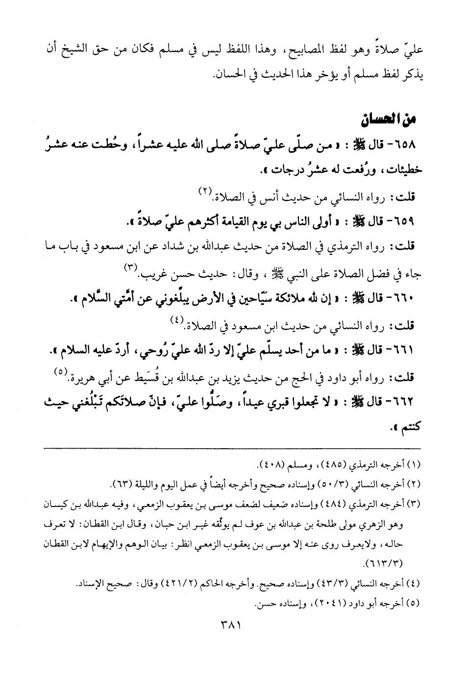 660 - قال - صلى الله عليه وسلم -: "إن لله ملائكة سَيّاحين في الأرض يبلّغوني عن أمَّتي السَّلام".