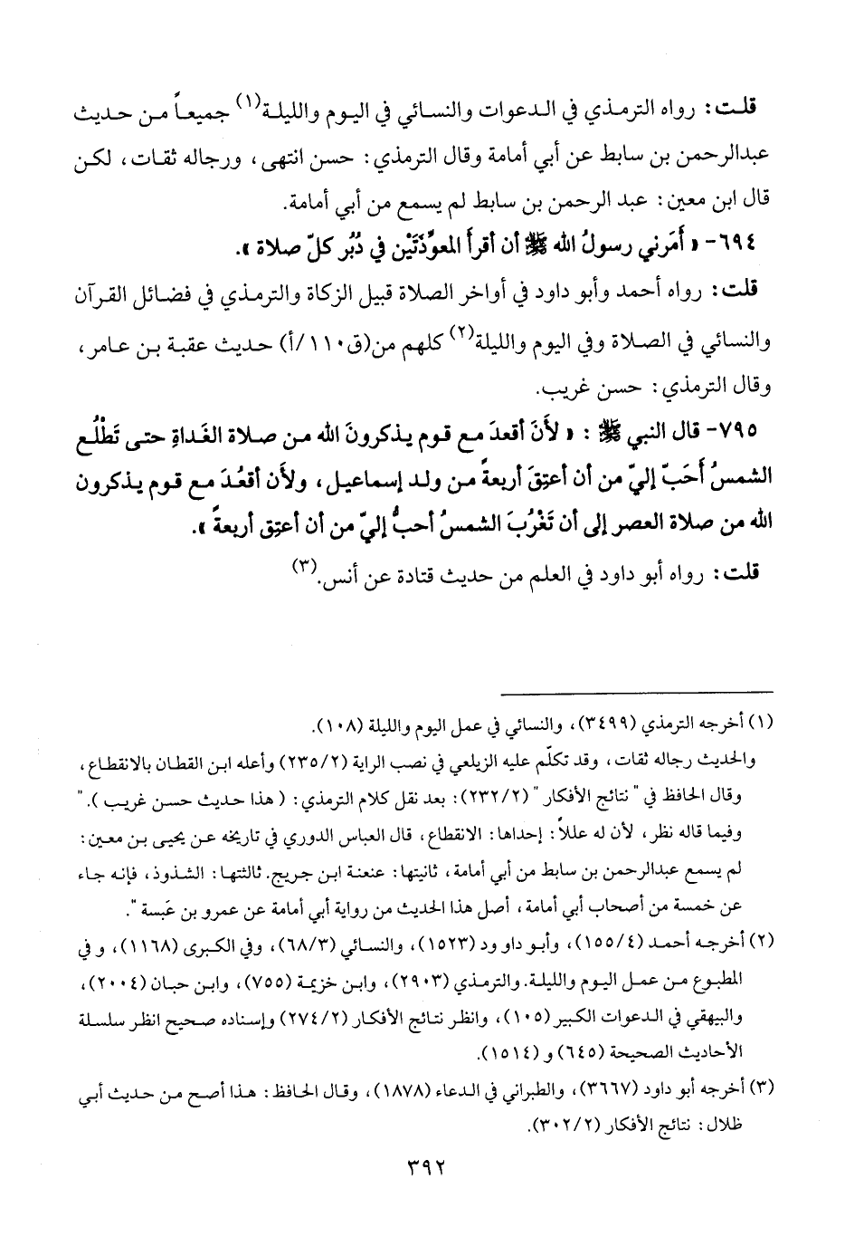 (¬2) أخرجه أحمد (4/ 155)، وأبو داود (1523)، والنسائي (3/ 68)، وفي الكبرى (1168)، وفي المطبوع من عمل اليوم والليلة. والترمذي (2903)، وابن خزيمة (755)، وابن حبان (2004)، والبيهقي في الدعوات الكبير (105)، وانظر نتائج الأفكار (2/ 274) وإسناده صحيح انظر سلسلة الأحاديث الصحيحة (645) و (1514).