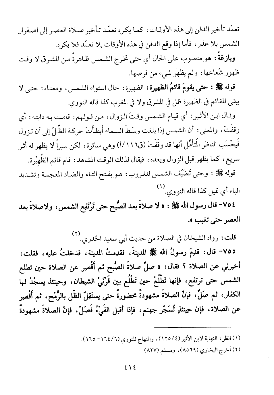 754 - قال رسول الله - صلى الله عليه وسلم -: "لا صلاةَ بعد الصُّبح حتى تَرْتَفِع الشمس، ولا صلاةَ بعد العصر حتى تغيب".