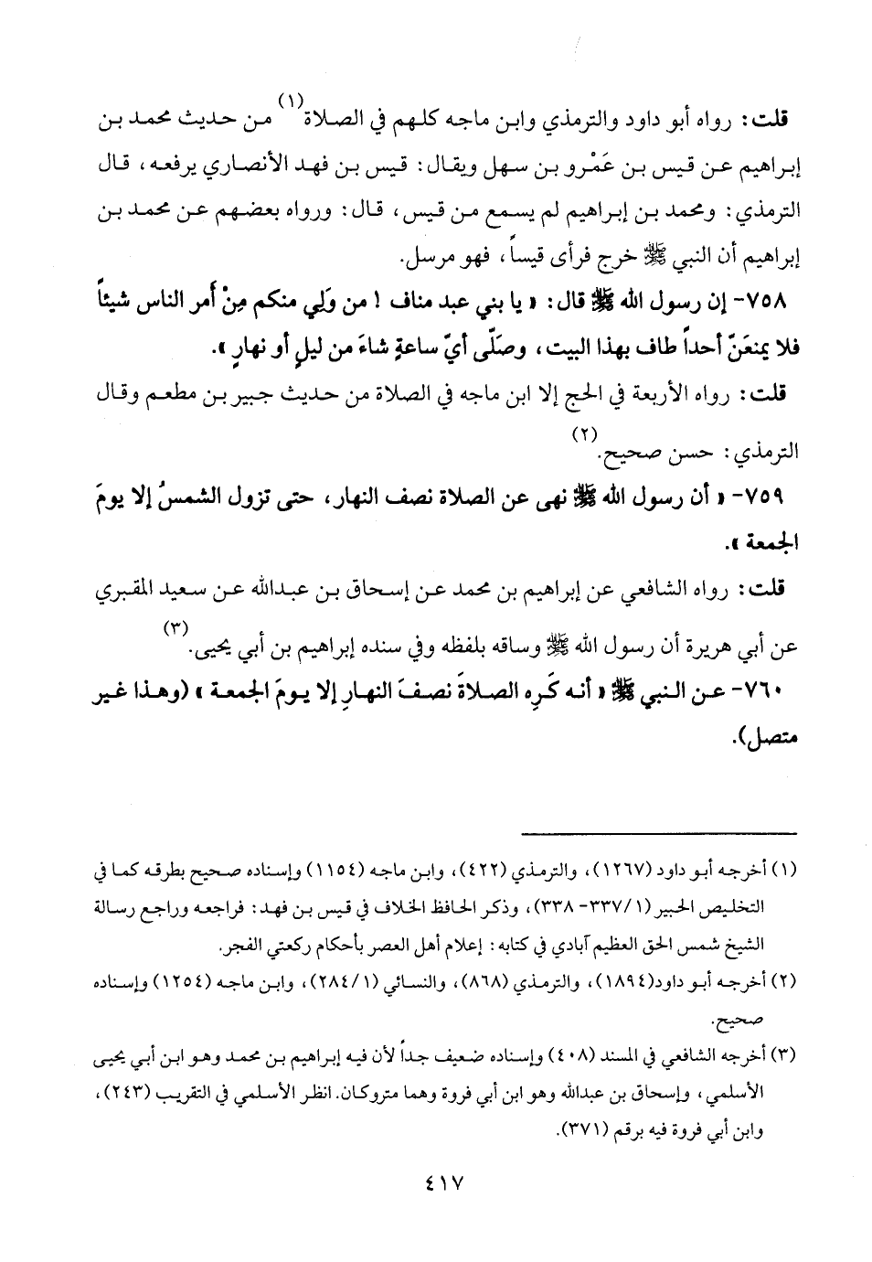 760 - عن النبي - صلى الله عليه وسلم - "أنه كَرِه الصلاةَ نصفَ النهار إلا يومَ الجمعة" (وهذا غير متصل).