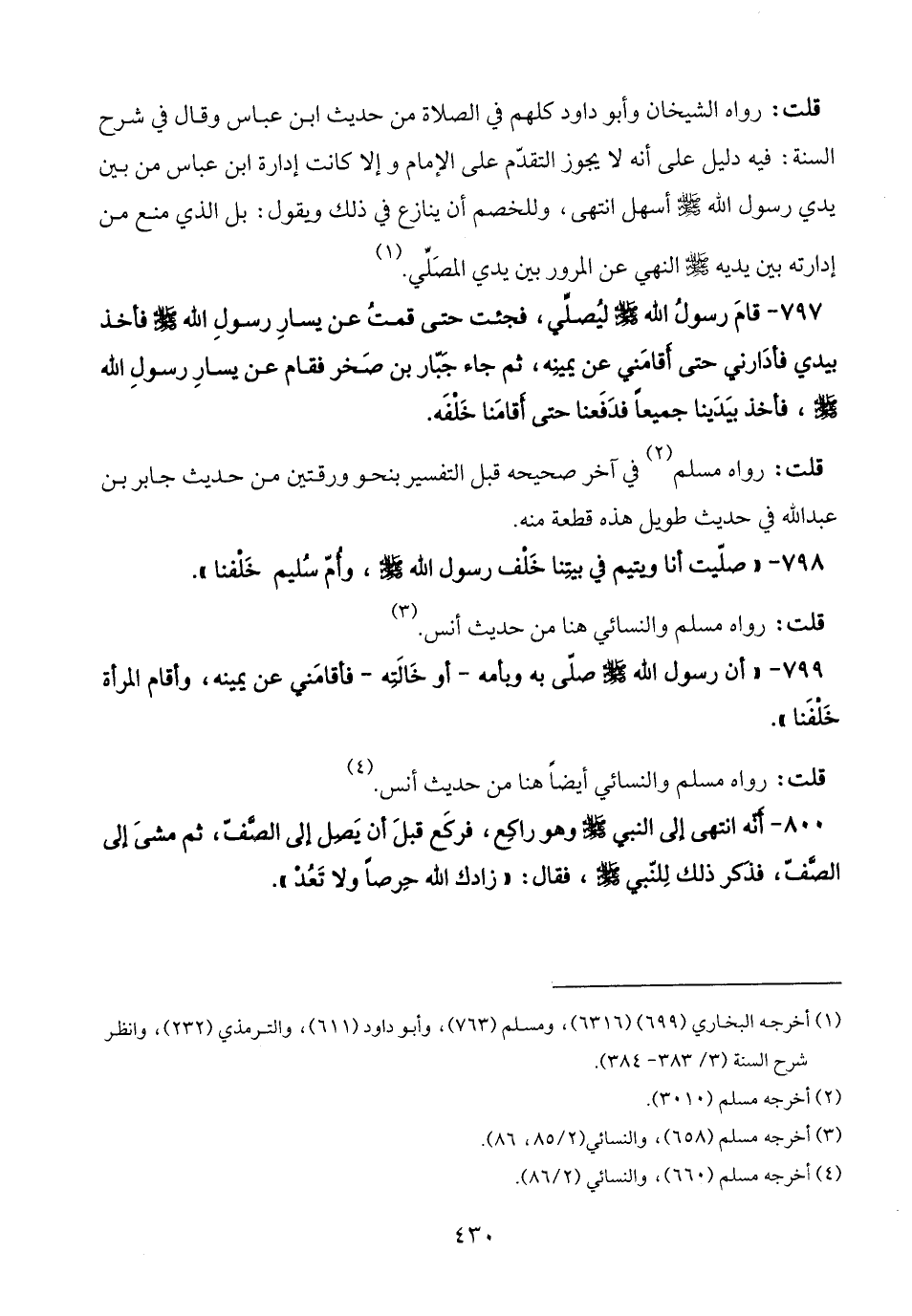 798 - "صلّيت أنا ويتيم في بيتنا خَلْف رسول الله - صلى الله عليه وسلم -، وأُمّ سُليم خَلْفنا".