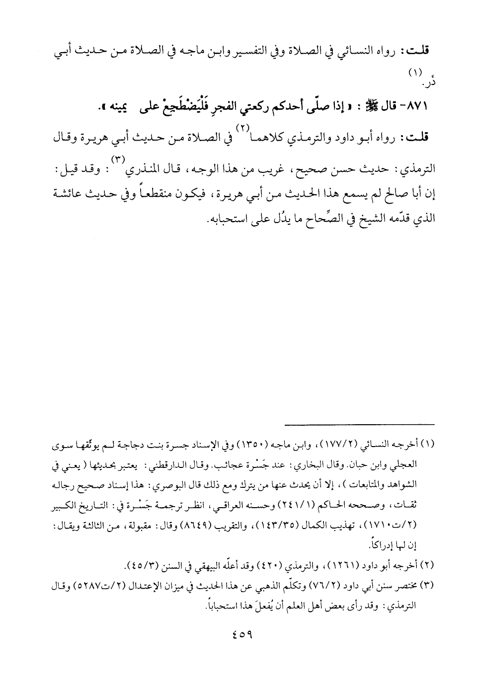 (¬3) مختصر سنن أبي داود (2/ 76) وتكلّم الذهبي عن هذا الحديث في ميزان الاعتدال (2/ ت 5287) وقال الترمذي: وقد رأى بعض أهل العلم أن يُفعل هذا استحبابًا.