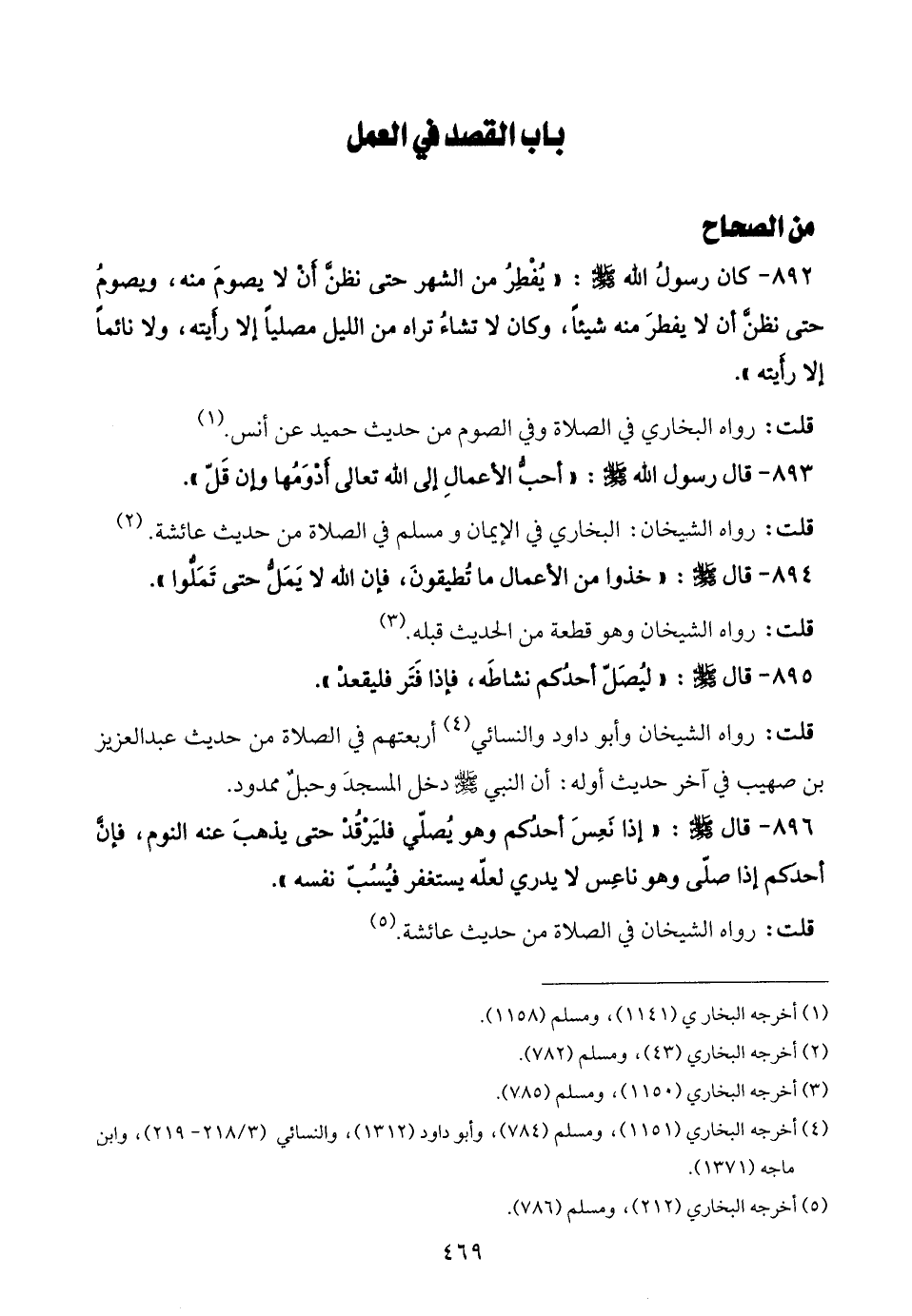 895 - قال - صلى الله عليه وسلم -: "ليُصَلّ أحدُكم نشاطَه، فإذا فَتَر فليقعدْ".