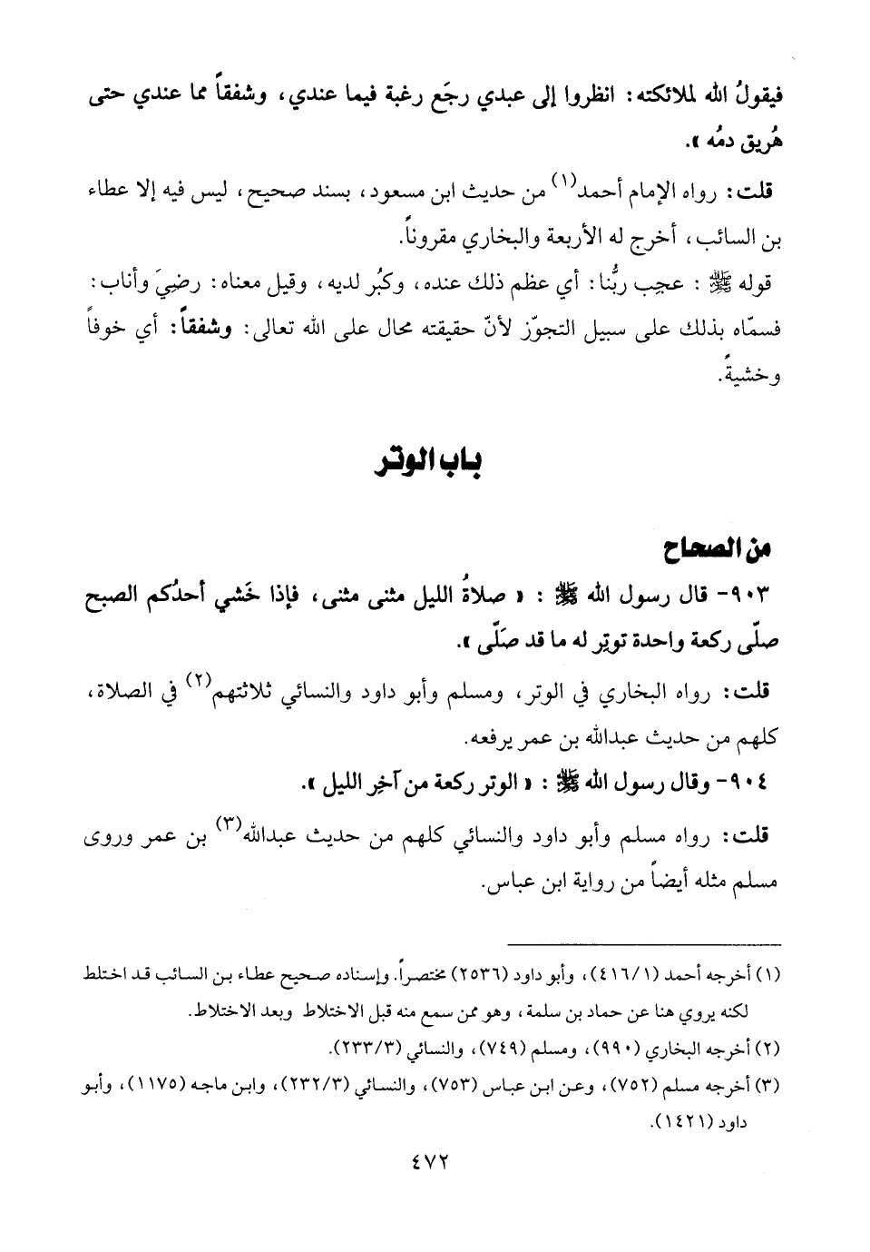قلت: رواه البخاري في الوتر، ومسلم وأبو داود والنسائي ثلاثتهم (¬2) في الصلاة، كلهم من حديث عبد الله بن عمر يرفعه.