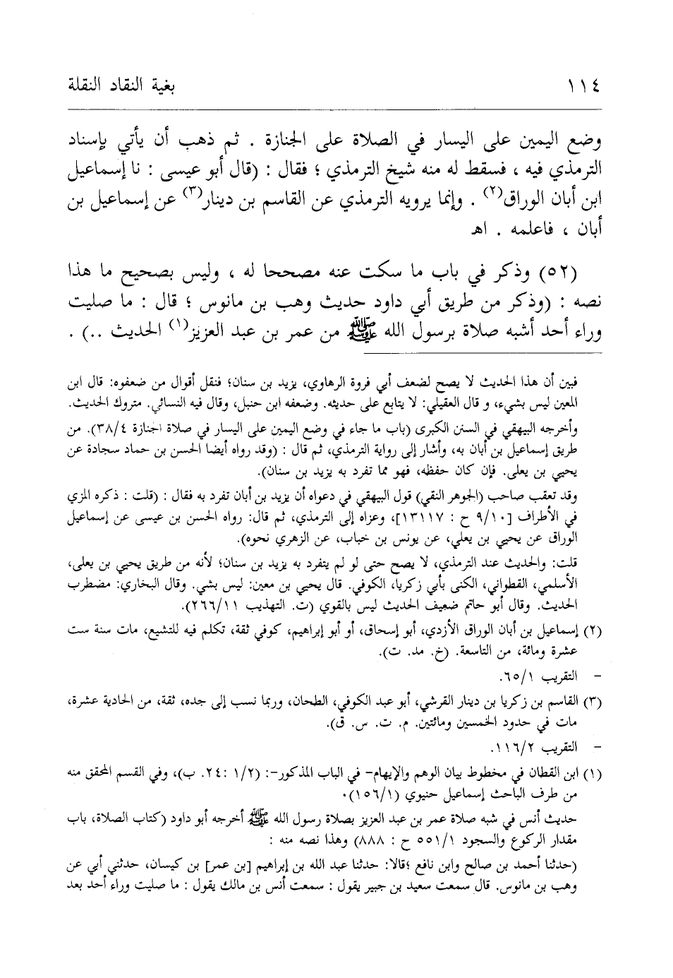 (¬1) ابن القطان في مخطوط بيان الوهم والإيهام -في الباب المذكور-: (2/ 1: 24. ب)، وفي القسم المحقق منه من طرف الباحث إسماعيل حنيوي (1/ 156).