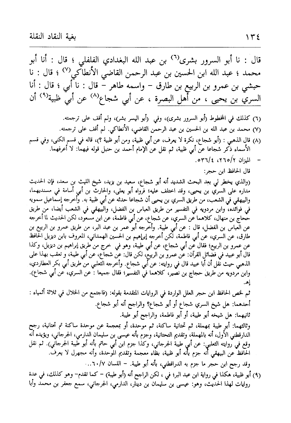 (¬6) كذلك في المخطوط (أبو السرور بشرى)! وفي (أبو اليسر بشر)، ولم أقف على ترجمته.