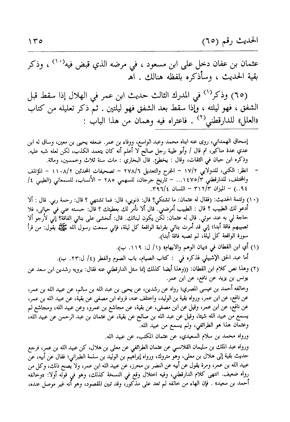 (65) وذكر (¬1) في المدرك الثالث حديث ابن عمر في الهلال إذا سقط قبل الشفق، فهو ليلته، وإذا سقط بعد الشفق فهو ليلتين. ثم ذكر تعليله من كتاب "العلل" للدارقطني (¬2). فاعتراه فيه وهمان من هذا الباب:
